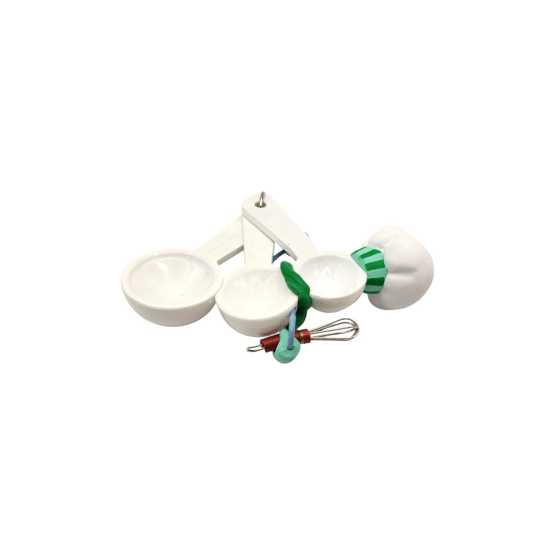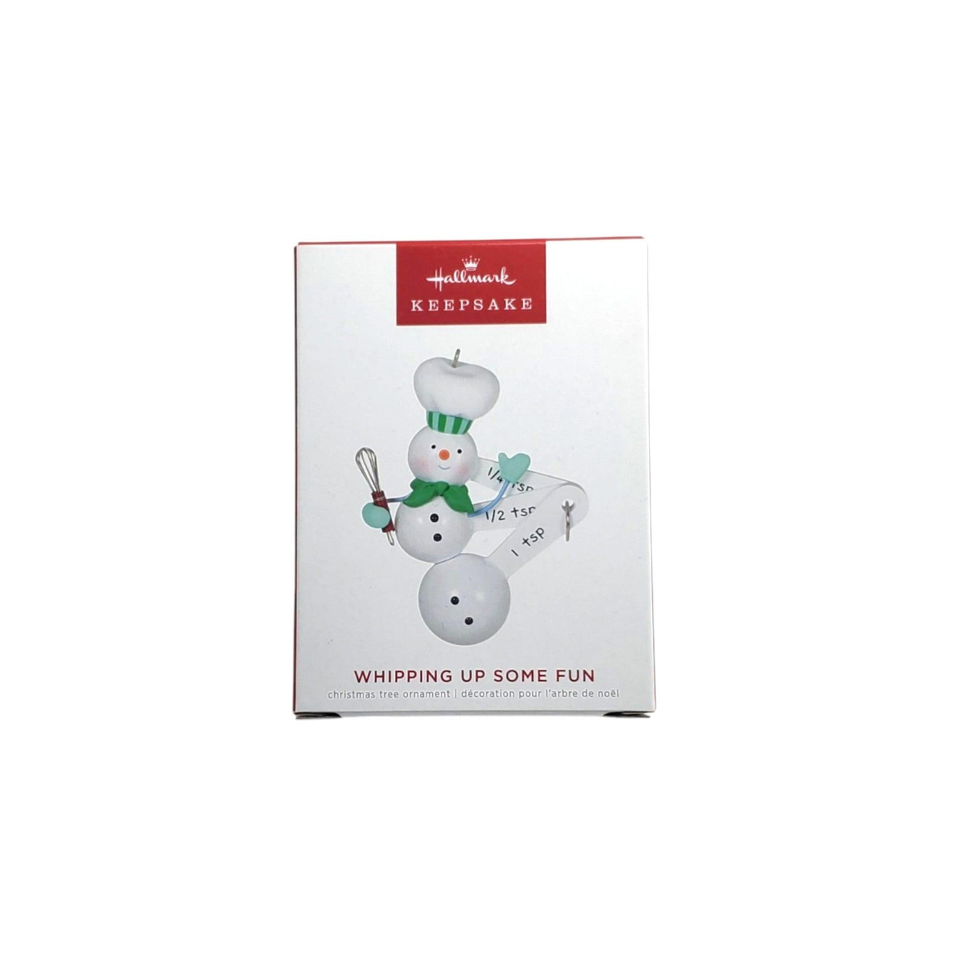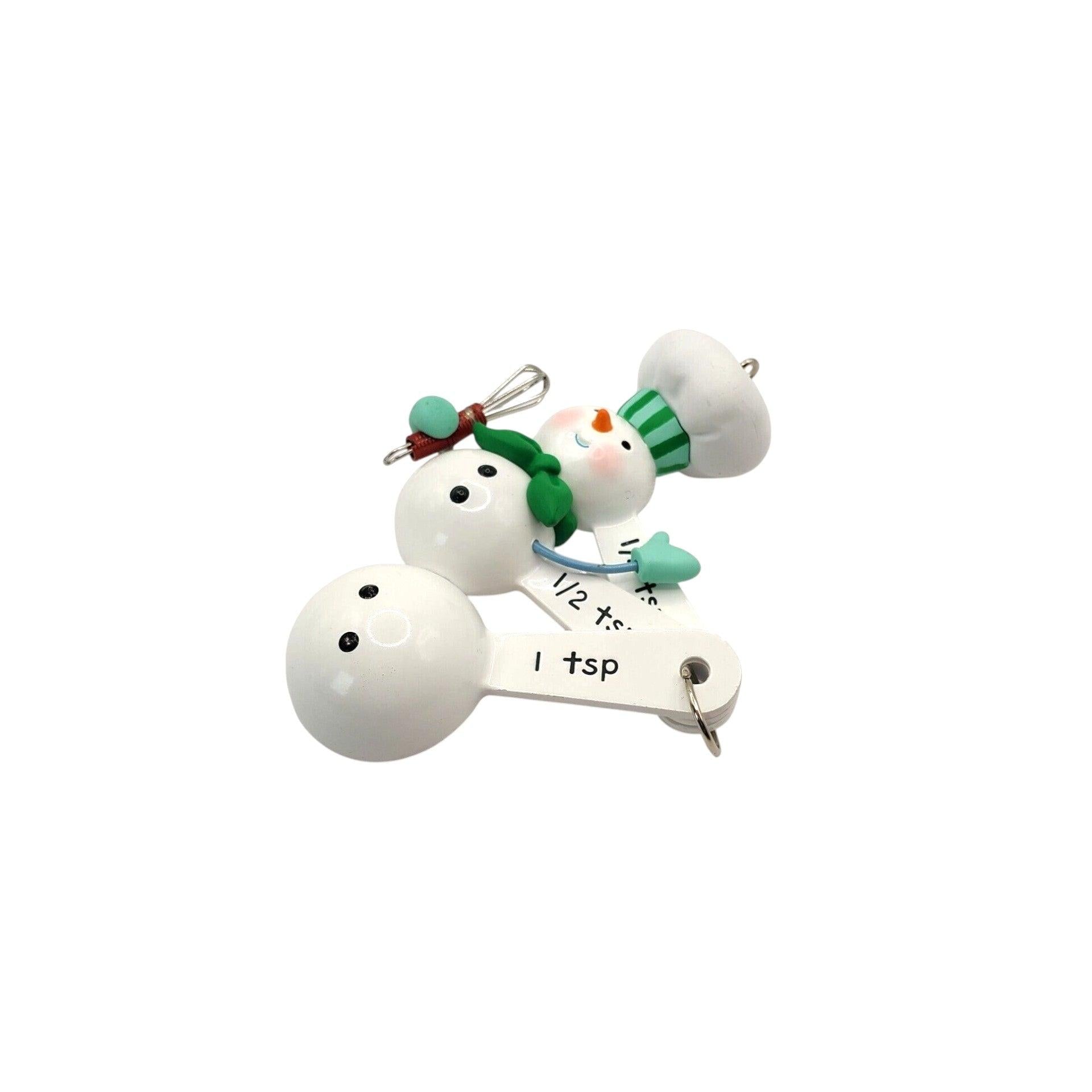 This keepsake ornament features three measuring spoons stacked to form a cheerful snowman, with a cupcake-inspired chef’s hat atop his head and a tiny whisk in his hand. The design captures a playful baking theme—perfect for holiday décor in a kitchen or for those who enjoy baking. Crafted of plastic with vibrant painted details, the piece reflects both whimsy and seasonal charm. For collectors of holiday ornaments and baking-themed décor, this piece combines character, niche theme and year-specific release into a collectible format.