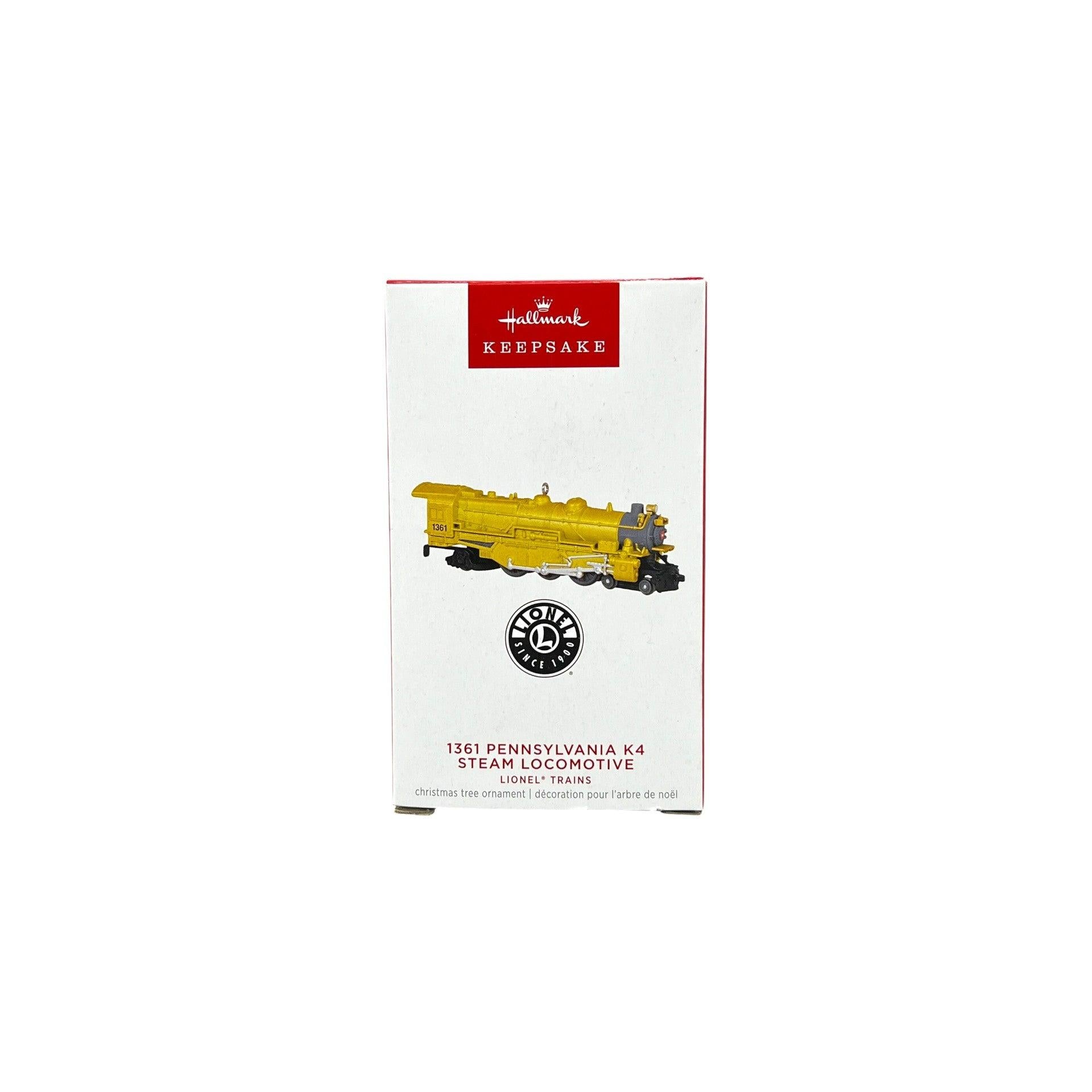 This limited edition Hallmark ornament features the legendary Pennsylvania Railroad K4 steam locomotive No. 1361, faithfully recreated in miniature and inspired by classic Lionel trains. The design showcases authentic locomotive detailing, including the streamlined boiler, front headlamp, driving wheels, and Pennsylvania Railroad markings, making it a standout collectible for train enthusiasts and Hallmark collectors alike. The ornament comes new in its original Hallmark box, with a molded protective insert and hang tag included. It does not include motion, sound, or lighting features and requires no batteries, cords, or light strings.