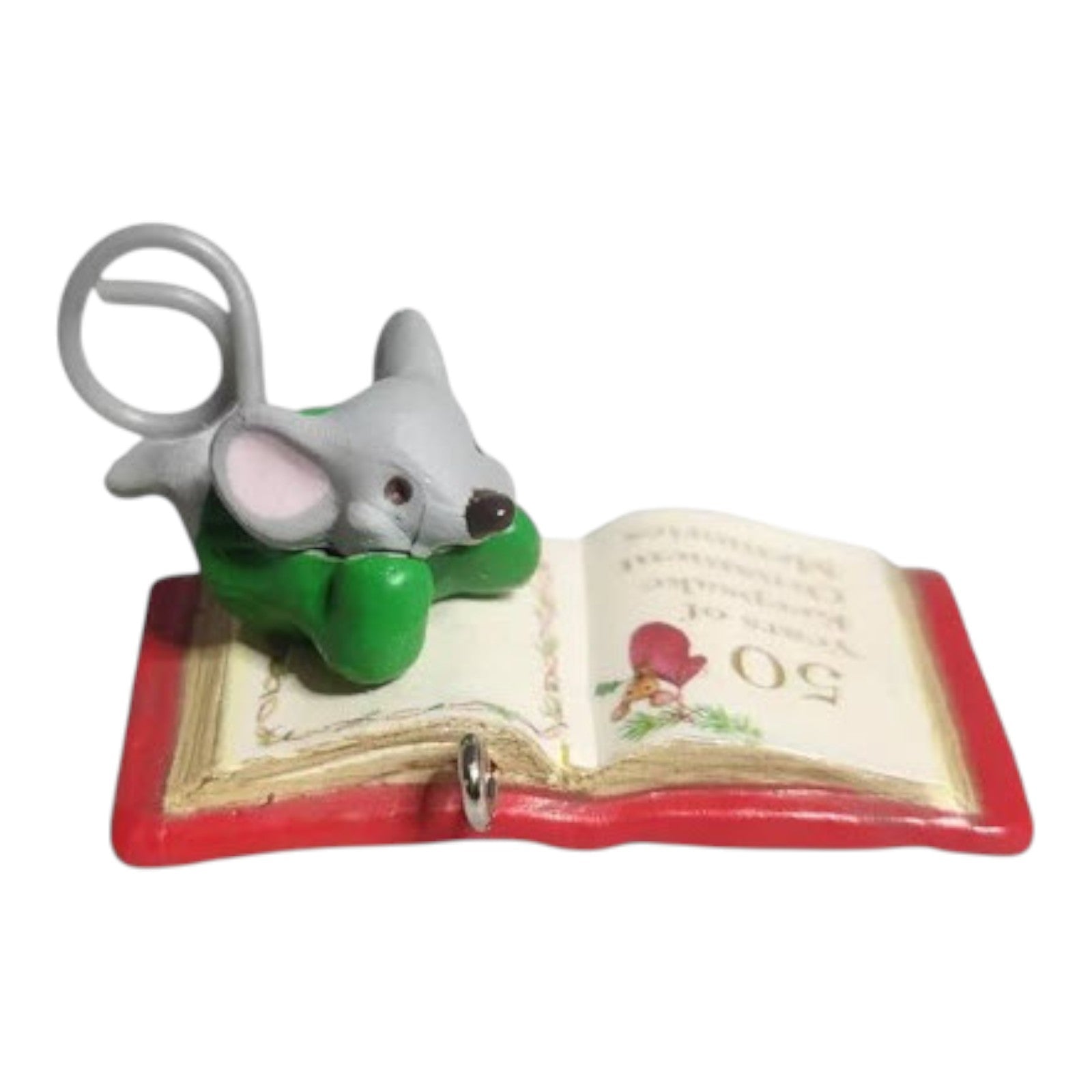 Celebrate the 50th-anniversary of the Keepsake line with this special-edition 2023 mini from Hallmark. The ornament features a festive little mouse in a green sweater perched atop a storybook with a red binding and metallic gold-edged pages—a charming nod to the classic “’Twas the Night Before Christmas” tale and the original 2017 mouse design. With its limited-edition status, repainted detail, and concise size, this piece appeals to collectors of the A Creature Was Stirring series, mini-ornament enthusiasts, and Hallmark Keepsake fans looking for anniversary editions. The combination of licensed design, collectible significance and compact format make it a standout addition to any holiday collection.