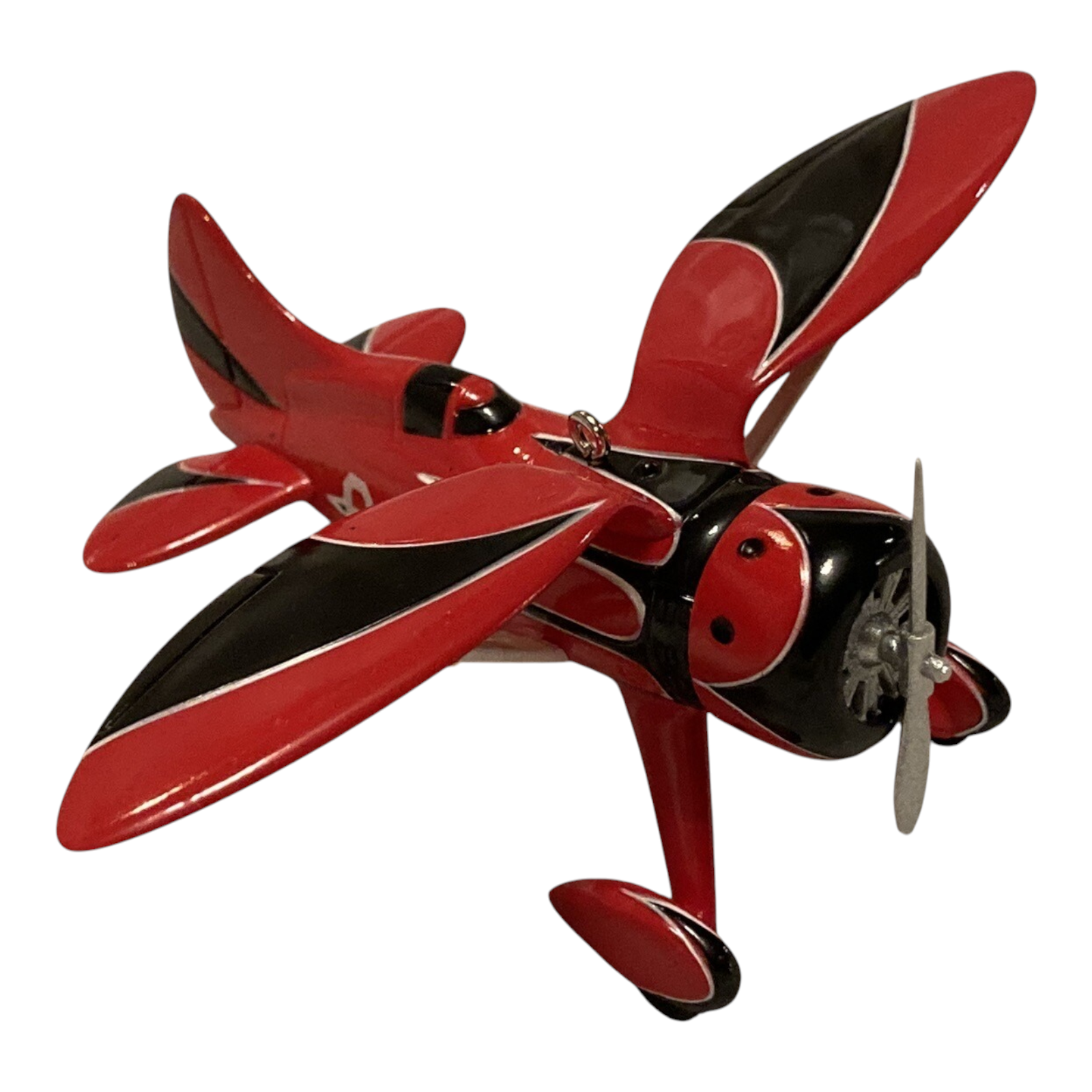 This high-flyer from the Hallmark Keepsake “Sky’s the Limit” series (#27) showcases a bright red plane with sporty black and white accents and a spinning propeller—designed for aviation-enthusiast collectors and holiday décor lovers alike. Designed by artist Lynn Norton, the ornament measures approximately 3.89″ W × 1.835″ H × 2.902″ D.