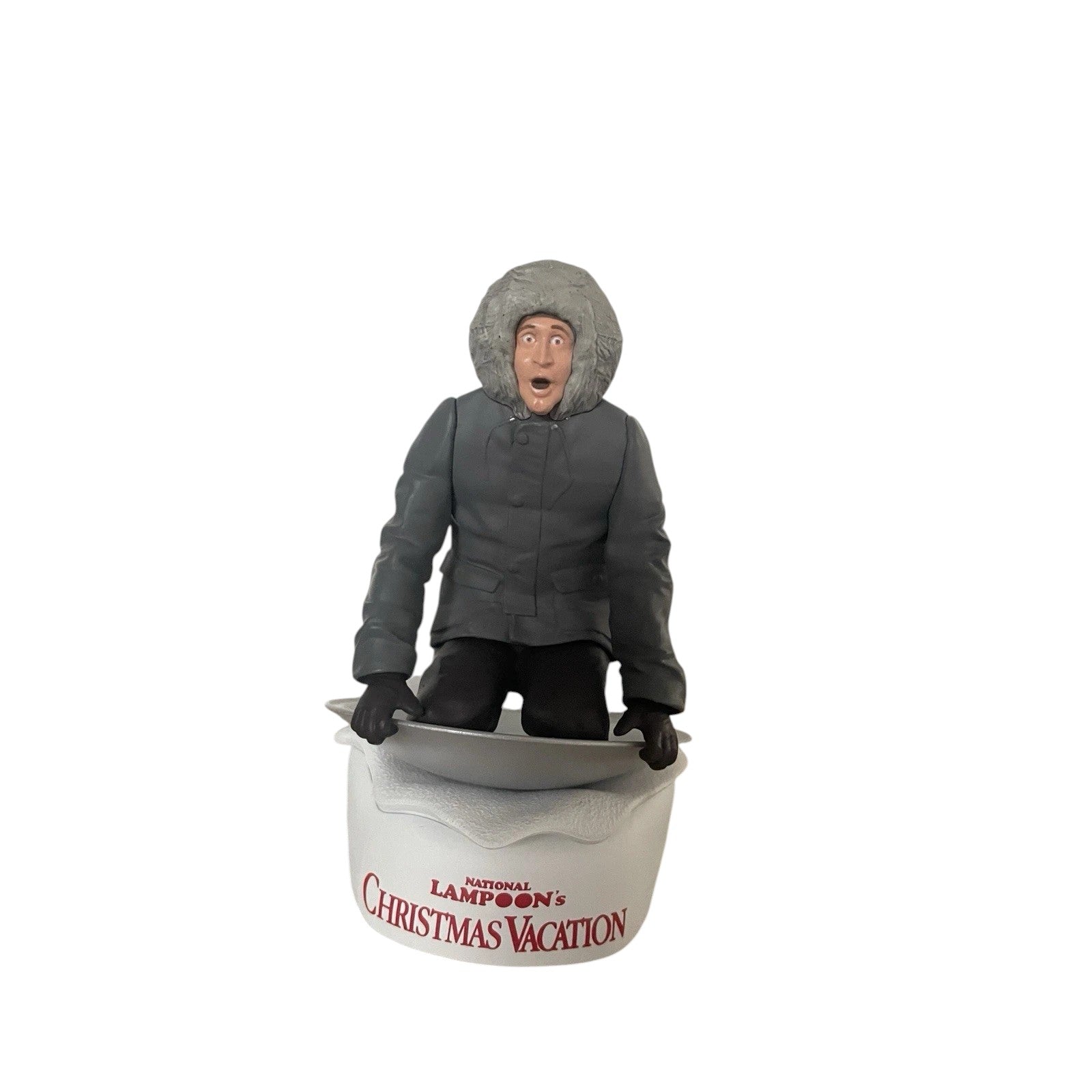 Relive one of the most unforgettable scenes from National Lampoon's Christmas Vacation with the 2023 “Don't Try This at Home, Kids!” ornament. This hilarious piece captures Clark Griswold mid-tumble on a snowy rooftop, wrapped in Christmas lights and holiday chaos. The ornament is loaded with personality and nostalgic charm. It includes the original Hallmark Keepsake box and tag. No batteries or cords are needed—just a good sense of humor and holiday spirit.