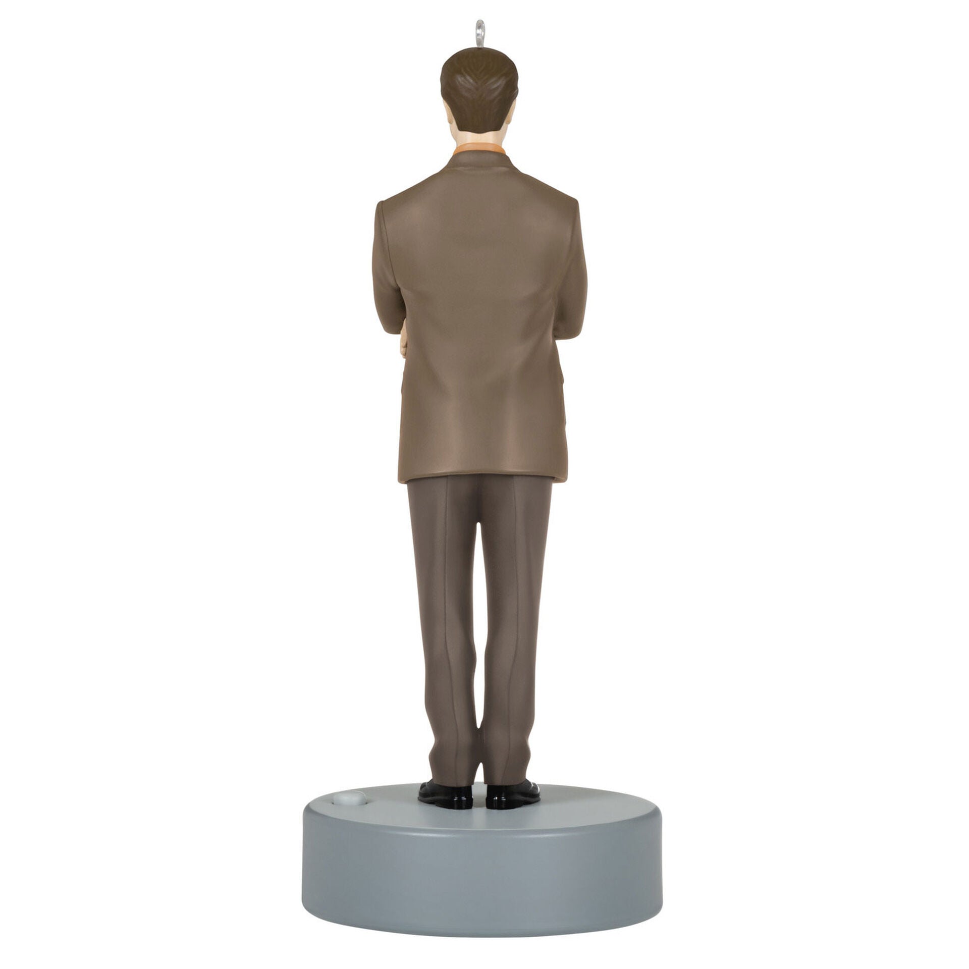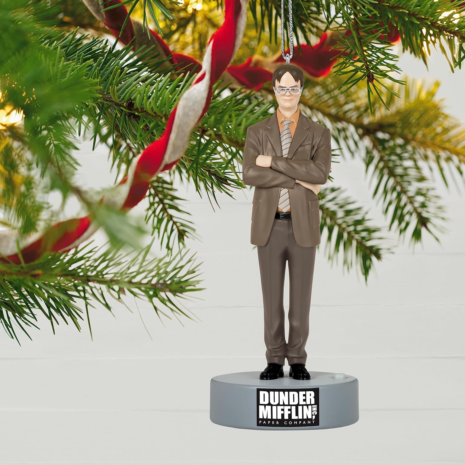 Celebrate your love for The Office with this standout 2023 keepsake ornament featuring Dwight Schrute, the self-proclaimed “Assistant to the Regional Manager” from Dunder Mifflin. He’s captured here in his yellow shirt and striped tie, perfectly channeling that Dwight energy. Press the button on this magic ornament and it plays iconic sound clips from the show, making it more than just decoration—it’s a conversation piece.