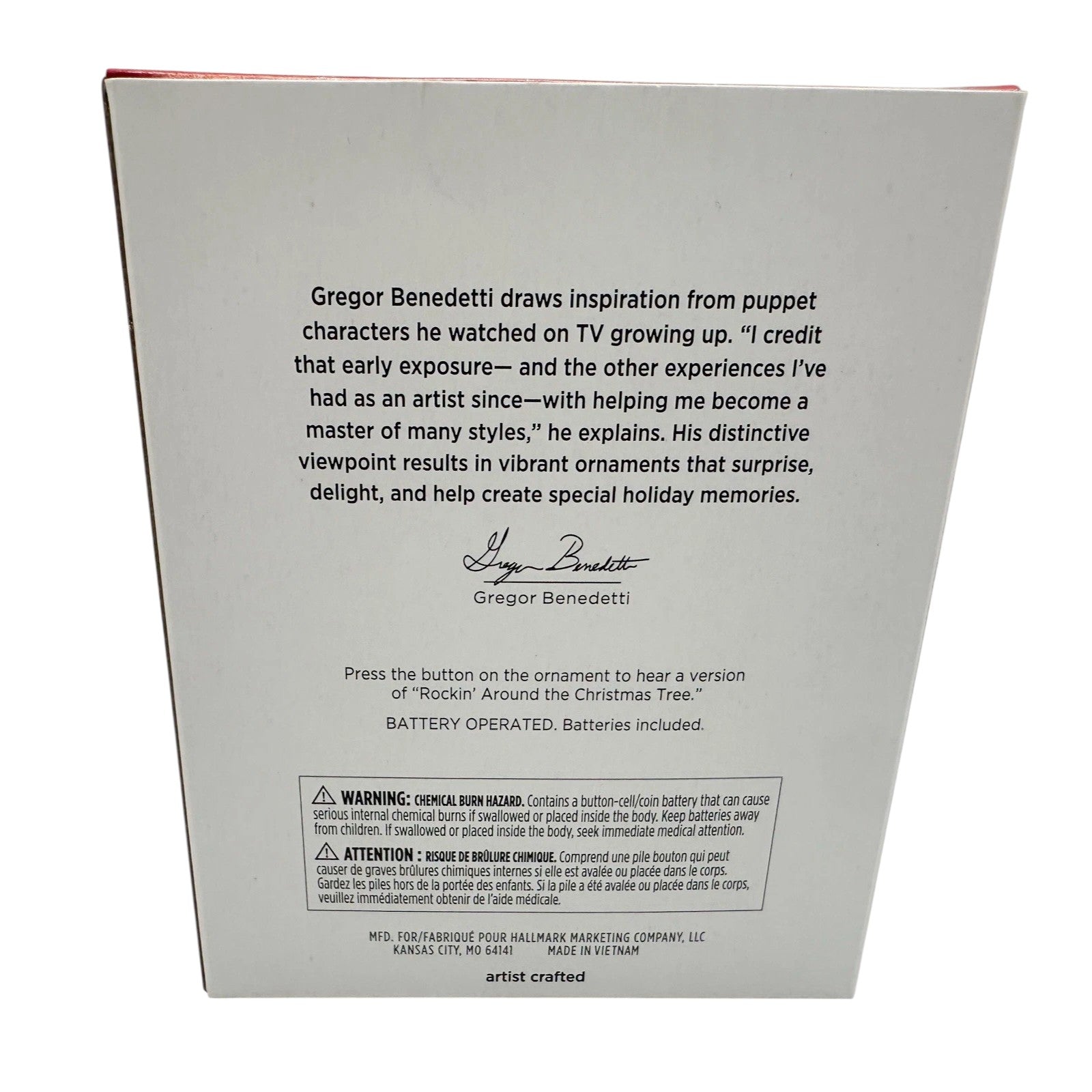 Add a dash of festive humor to your holiday decor with the 2023 Guacin' Around the Christmas Tree ornament. This delightful piece features a cheerful avocado donning a Santa hat and a red scarf, joyfully dancing with a decorated Christmas tree. Press the button to hear an instrumental version of the classic holiday song "Rockin' Around the Christmas Tree." The ornament requires two LR44 replaceable batteries, which are included. It measures approximately 2.8" x 3.5" x 2.25" and is designed by artist Gregor Benedetti.