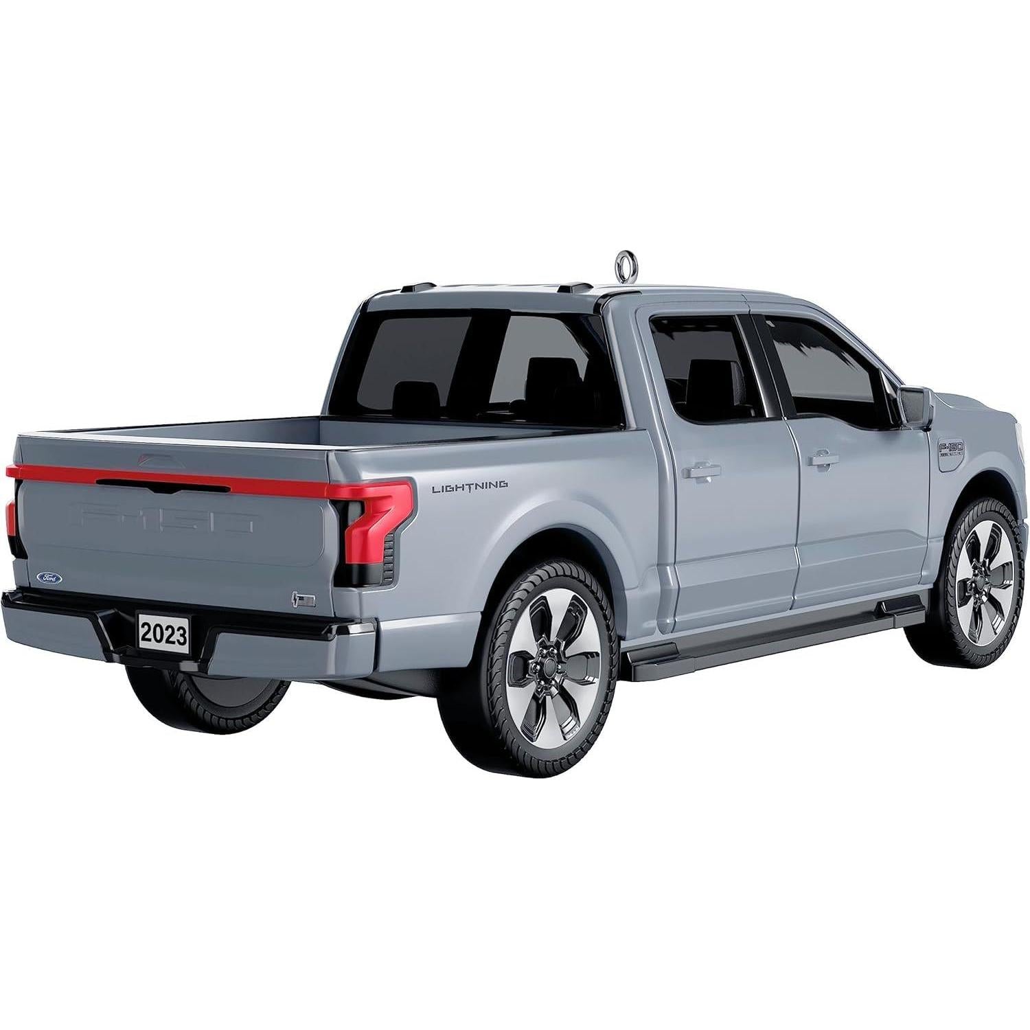 Embrace automotive innovation on your tree with the 2022 Ford F‑150 Lightning, featured as a 2023 collectible in Hallmark’s All‑American Trucks series. This sporty silver die-cast metal ornament captures Ford’s groundbreaking all-electric pickup with superb detail—from the Ford logo embossed on the tailgate to realistic turning wheels. License plates are marked “2022” up front and “2023” at the rear, commemorating both the truck’s model year and the ornament release. It includes a miniature Christmas tree and gift in the bed and arrives in its original Hallmark gift box with protective insert, hanging loop, collector’s card, and tag. No batteries or cords are needed—its magic is purely mechanical and visual.