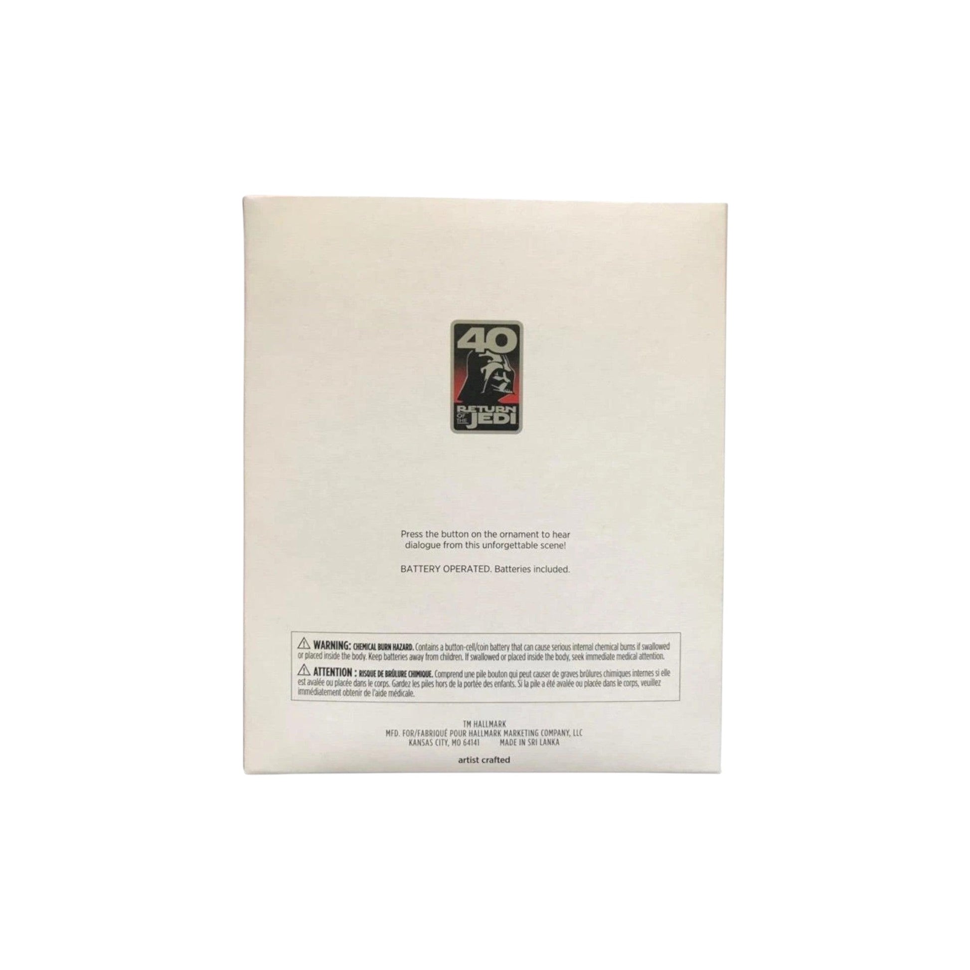 Bring the grandeur of the Great Pit of Carkoon to your holiday display with this 2023 Hallmark Magic Sound ornament. A faithful miniature replica of Jabba the Hutt’s sail barge—a centerpiece in Return of the Jedi—it plays iconic dialogue from the dockside execution scene at the press of its button. Crafted in durable plastic, it arrives pre-hung in its original box with two LR44 batteries included—no cords or adapters necessary. A cinematic statement piece for any Star Wars collector.
