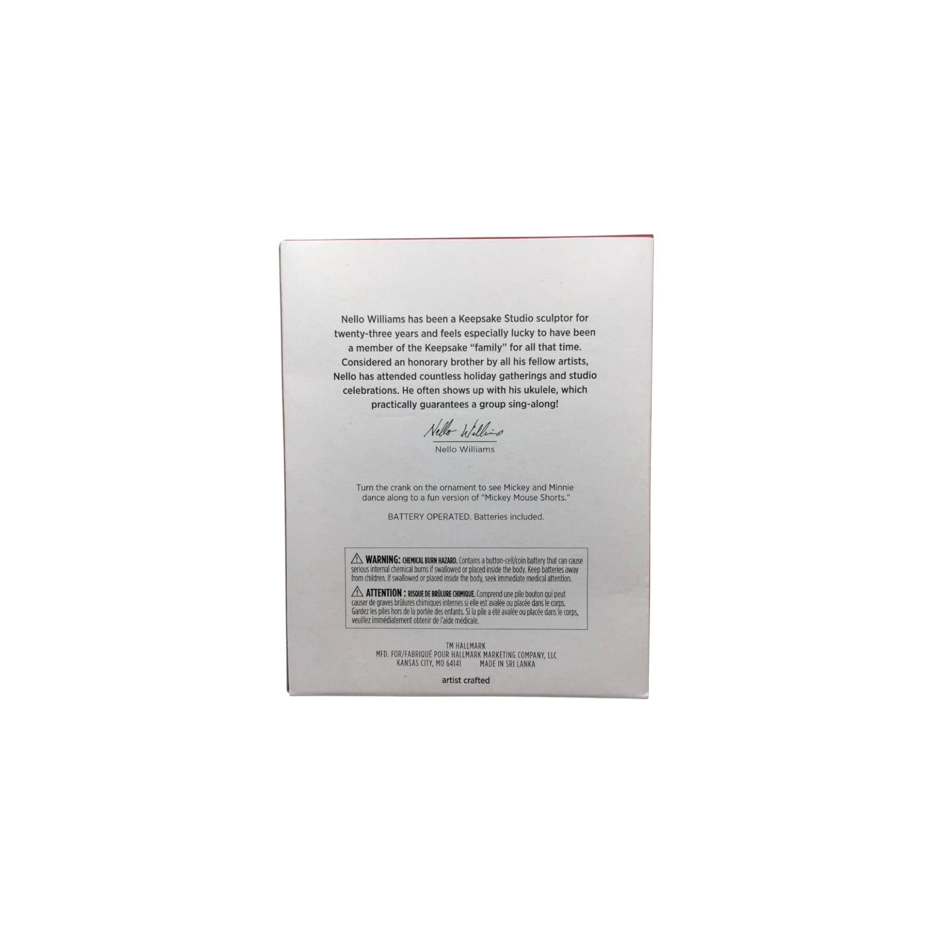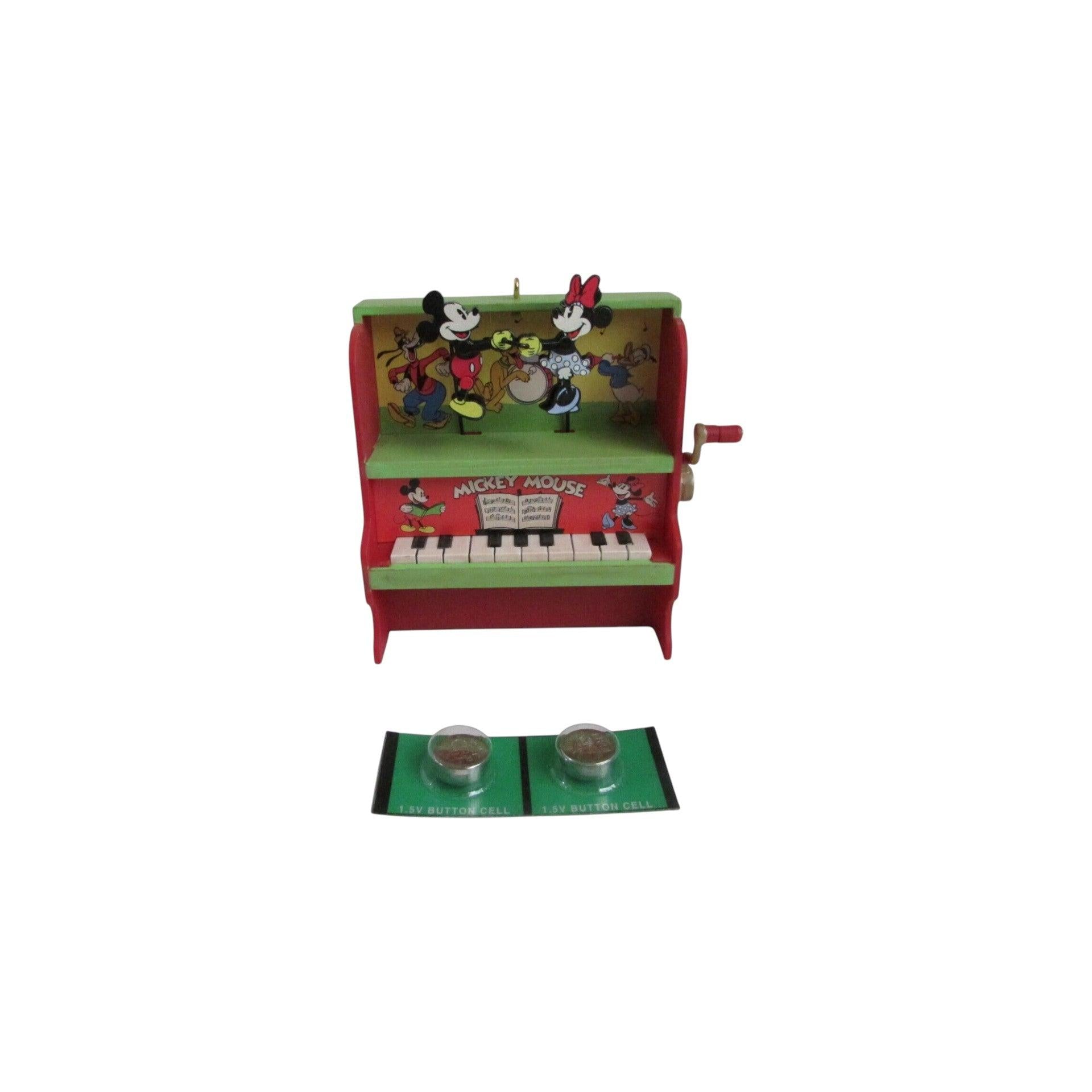 Bring music and motion to your holiday tree with the 2023 Let’s Dance! Hallmark Keepsake ornament featuring Mickey and Minnie Mouse in a whimsical, dance-inspired scene. Designed like a vintage toy piano, this collectible ornament lets you turn the crank to play a fun version of the “Mickey Mouse Shorts” tune while Mickey and Minnie dance along — adding both movement and sound to your seasonal décor. Packaged in its original box, this piece makes an ideal gift for Disney fans and collectors. It requires two replaceable LR44 batteries (included) to activate its motion and music feature.