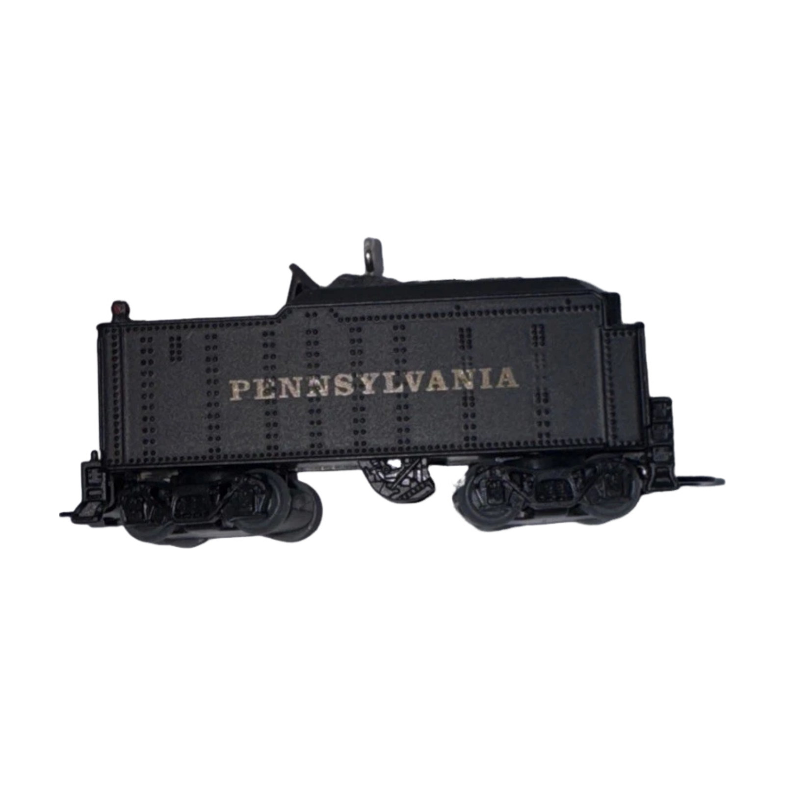 Complete your holiday railroad display with the 2023 Pennsylvania K4 Tender, a masterfully crafted companion to the Pennsylvania K4 Steam Locomotive from Hallmark’s Lionel Train series. Meticulously rendered in die-cast metal, this miniature features rolling wheels and detailed “Pennsylvania” markings that evoke the nostalgia of classic steam-era railroading. Arriving ready to hang in its original Keepsake box with a pre-attached loop, it requires no batteries, cords, or light strings to shine on your tree. This ornament was introduced shortly after the July 15, 2023 Hallmark Ornament Premiere Event.