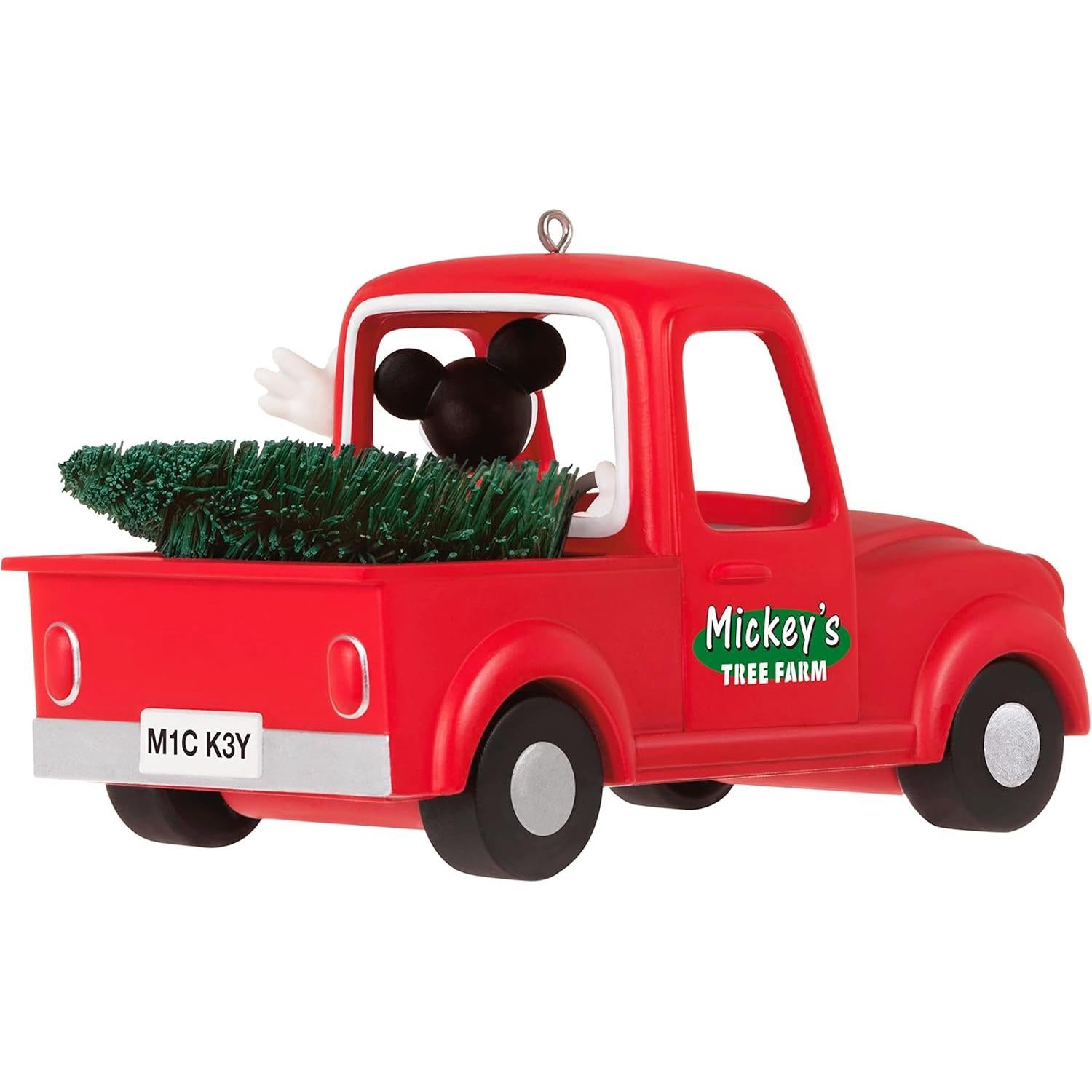 Drive home the holiday tradition with Mickey’s Tree Farm! This festive ornament shows Mickey Mouse at the wheel of his retro red truck, hauling a fresh bottlebrush Christmas tree and a few wrapped presents in back—perfect for bringing home that holiday warmth. The ornament includes a nostalgic truck with turning wheels that add a playful motion touch. Your purchase includes the ornament itself, the Hallmark Keepsake tag, and when available, the original gift box. Requires no batteries, cords, or light strings—just hang it via its built-in loop and enjoy the charm.