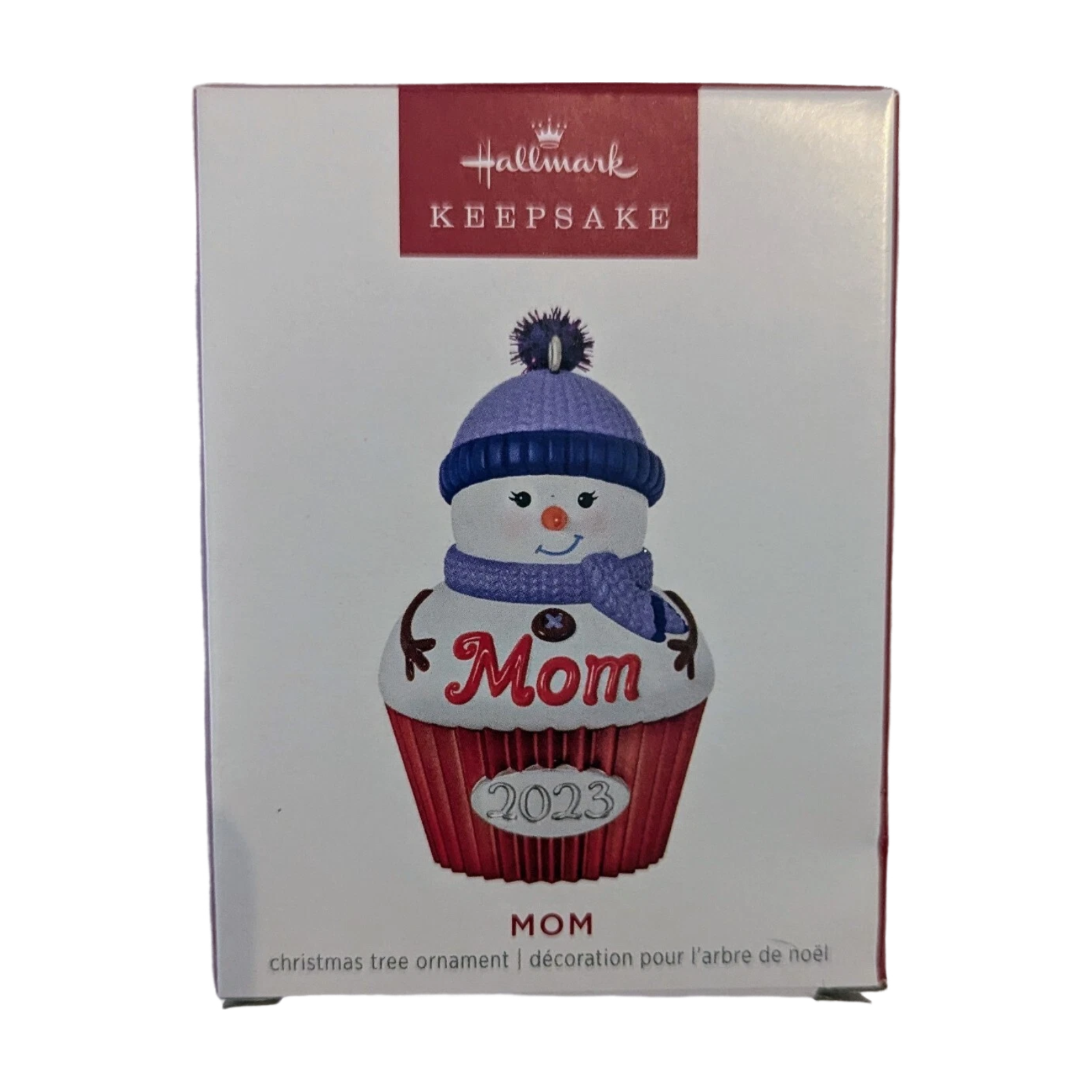 This 2023 Keepsake ornament features a charming snow-lady styled as a cupcake—bundled up in a winter hat and scarf with a pom-pom, and accented with the inscription “Mom 2023”. The ornament is part of Hallmark’s “Cupcake Snow Family” collection and pairs beautifully with coordinating “Dad”, “Daughter” and “Son” versions to build a themed family tree display. The size is compact, making it a sweet gift for Mom that fits easily on a tree or ornament hook.