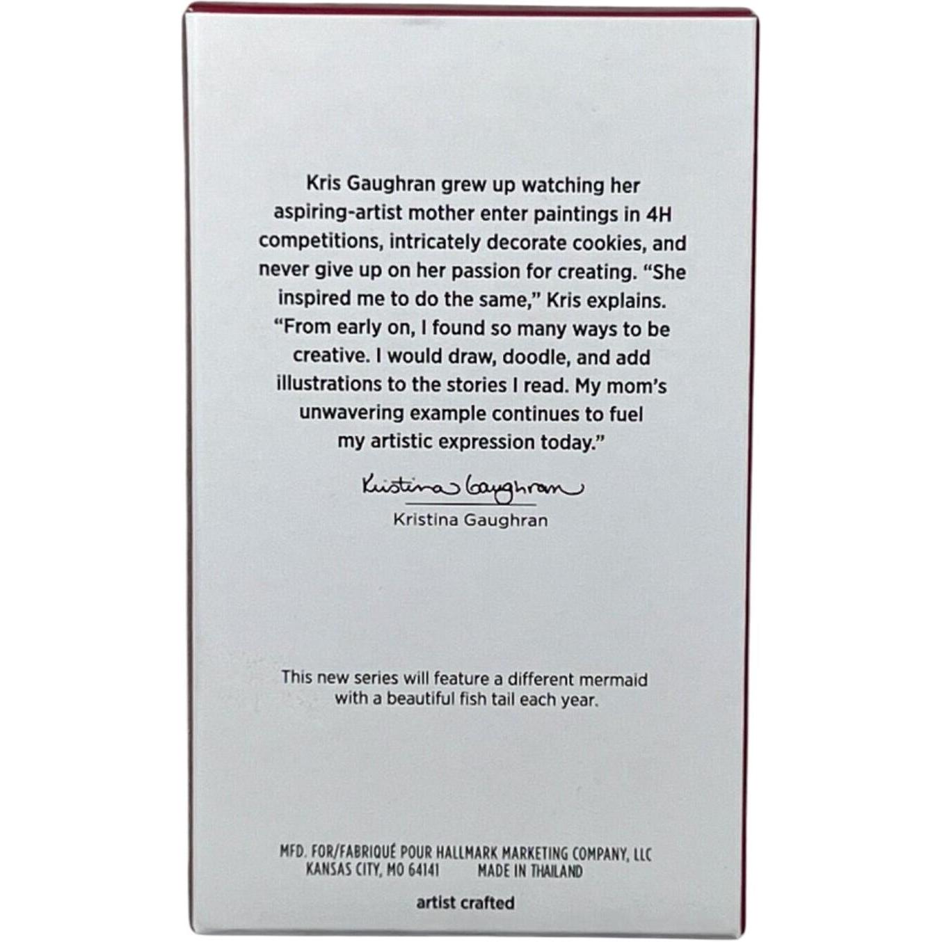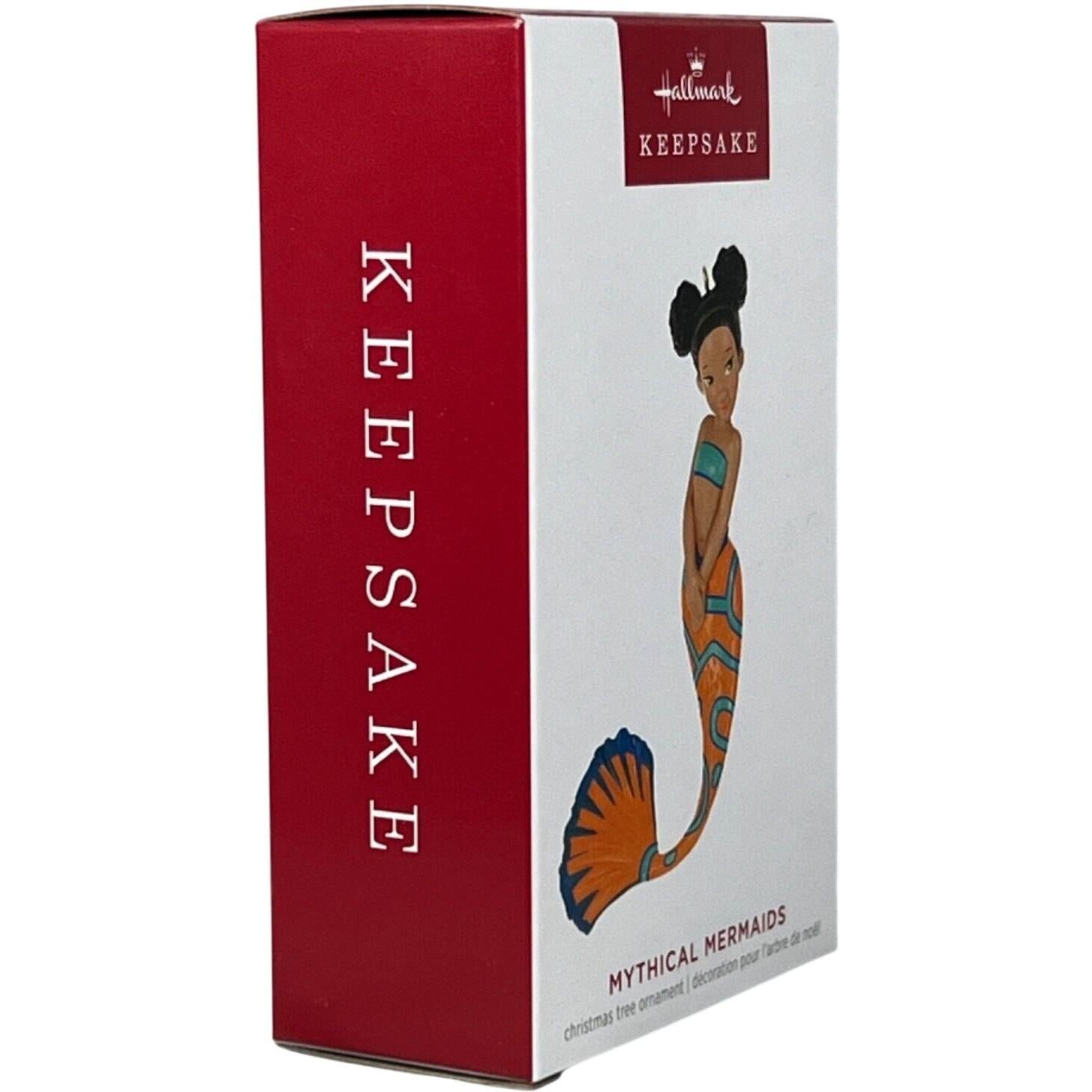 Dive into an enchanting new chapter in Keepsake collections with Mythical Mermaids, the first ornament in a magical new series. This stunning piece showcases a mermaid with a vibrant orange and blue, clownfish-inspired tail with embossed scales, capturing aquatic beauty and festive flair. Created by artist Kristina Gaughran, this ornament blends fantasy and elegance perfectly.