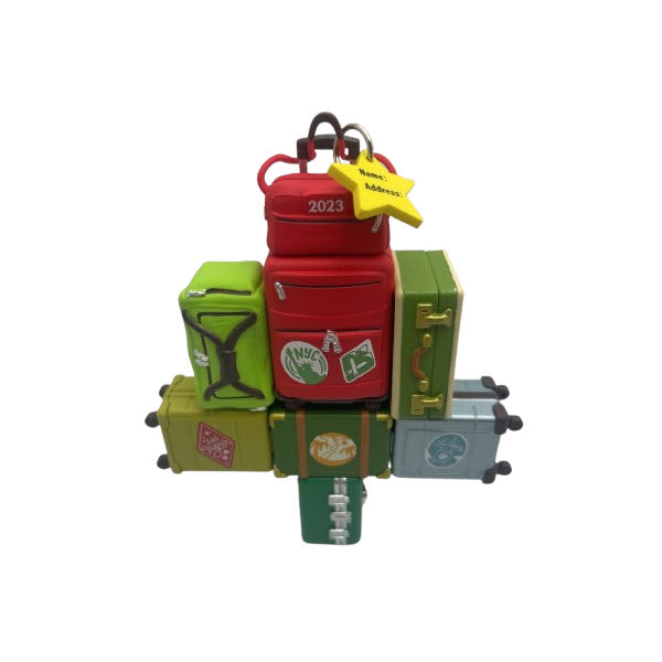 Capture the wanderlust spirit with this 2023 ornament designed for travel-lovers. The piece features a stack of colourful suitcases arranged like a Christmas tree, each adorned with destination tags and topped with a star-shaped luggage charm. Created by artist Tom Best, the resin/mixed-material ornament brings an adventurous feel to holiday décor. It makes a thoughtful gift for someone who loves exploring the world or commemorating past trips and future travels.