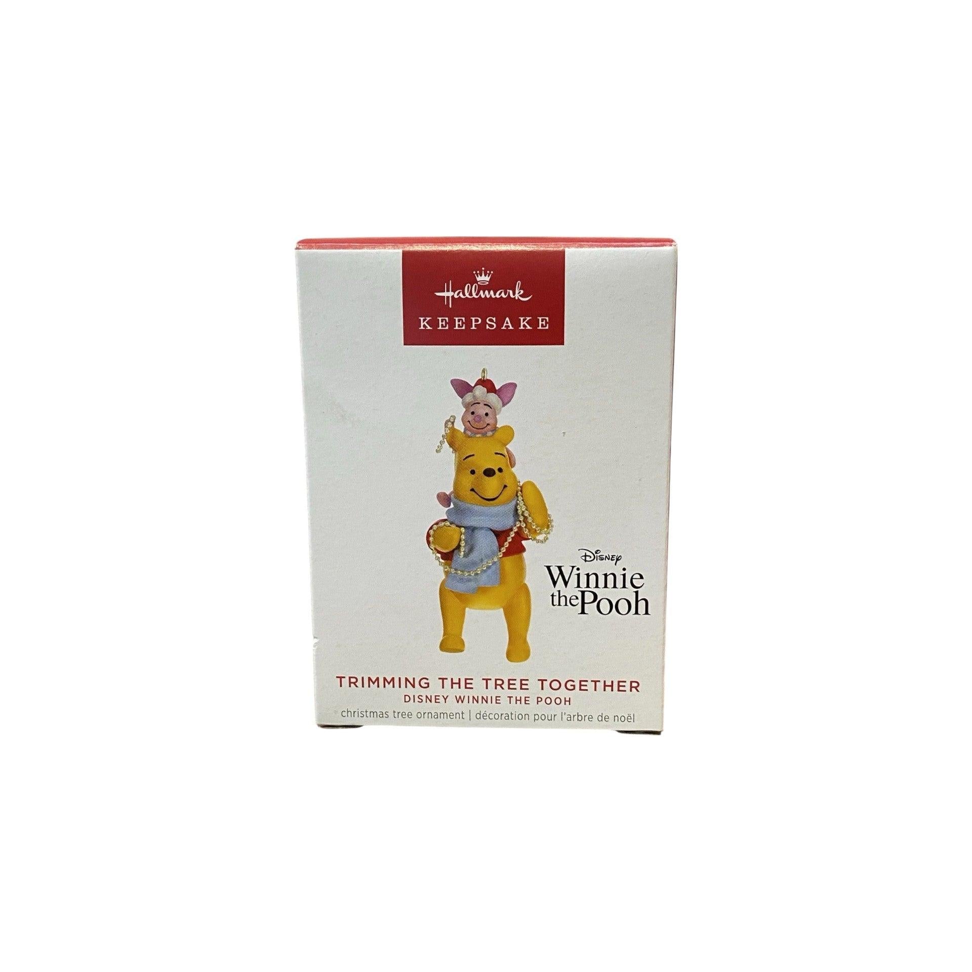Share a sweet holiday moment with Winnie the Pooh and Piglet in Trimming the Tree Together, featuring Pooh in a cozy blue scarf while Piglet—wearing a Santa hat and scarf—helps drape shimmery garland as they decorate for Christmas. This keepsake-style ornament comes packaged in the original Hallmark box (new condition) for easy gifting and storage. No batteries, cords, or light strings are required—just hang it and enjoy the classic Hundred Acre Wood charm.