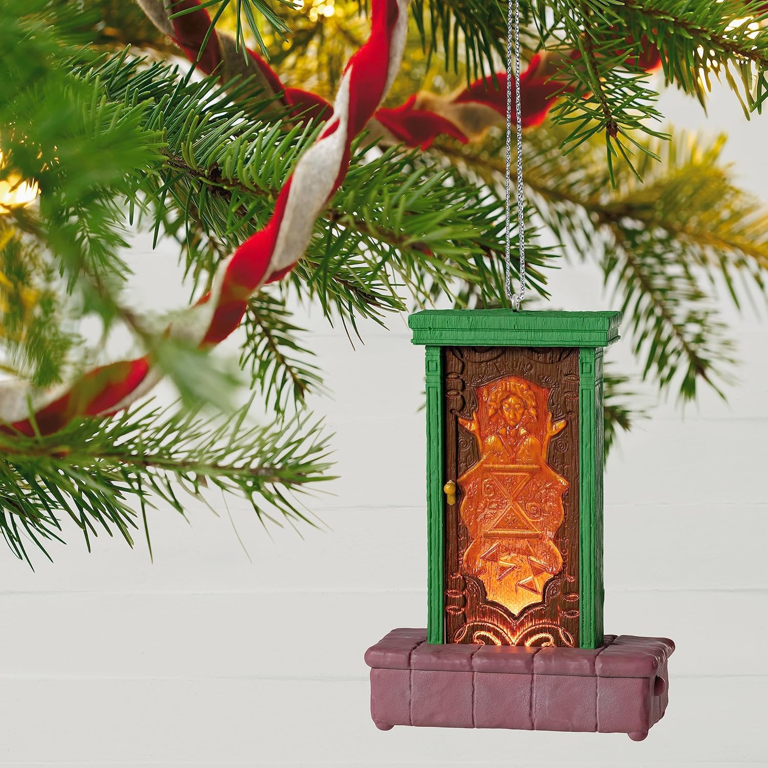 Invite a dash of Encanto-inspired magic to your holiday décor with the 2023 ornament featuring Bruno’s door from the Madrigal family's enchanted home, Casita. With a simple press of a button, the door illuminates and plays a segment of the unforgettable song, “We Don’t Talk About Bruno.” The ornament arrives mint in box, perfect for gifting or storing as part of your collection. It runs on replaceable batteries (included)—no cords or Power Box required. This collectible captures the whimsy and wonder of the film in one charming keepsake.