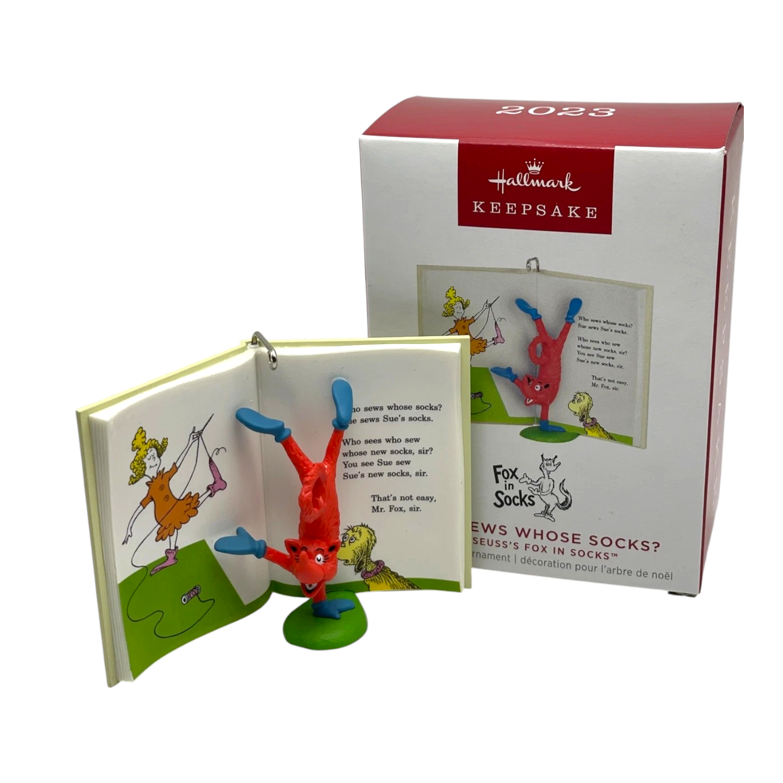 Bring the playful rhyme of Dr. Seuss® to your holiday tree with this delightful Keepsake ornament. On one side, it features Fox from Fox in Socks tangled up in a tongue-twister scene, while the reverse resembles the classic book cover—a clever nod to Seussian fun and literacy. Designed by artist Nello Williams, the piece uses dimensional mixed-media detail and vibrant colours to capture the whimsy of the moment. Ideal for fans of Dr. Seuss, book lovers, ornament collectors or anyone wanting a literary twist for their holiday décor.
