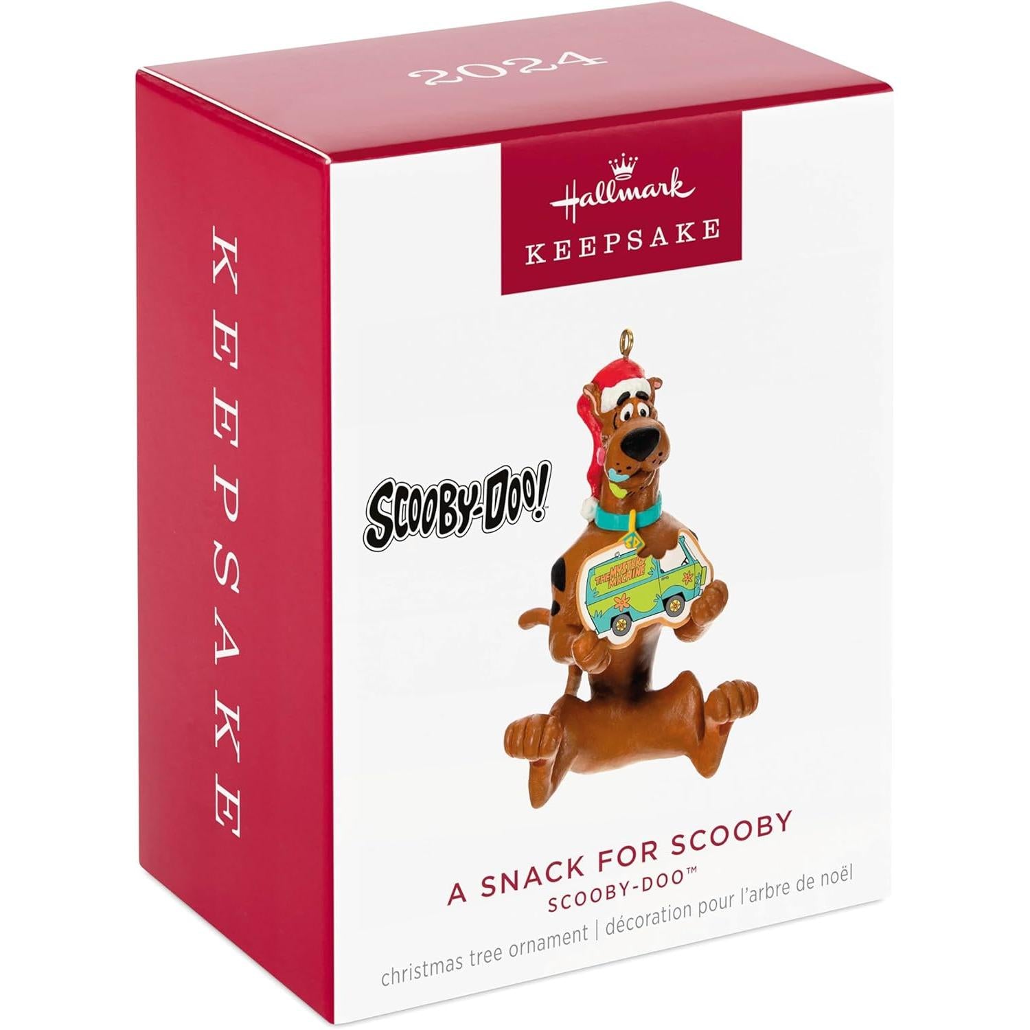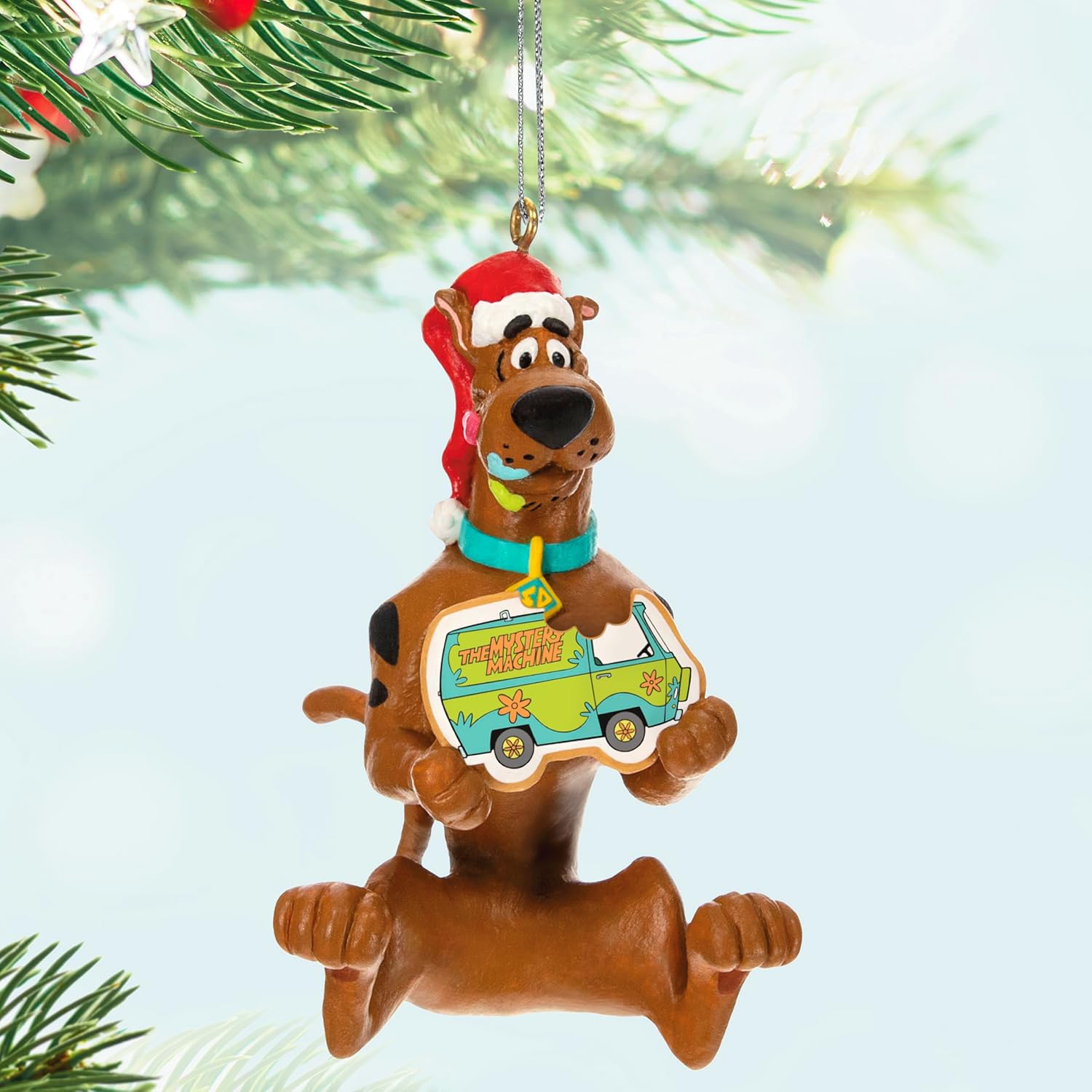 Celebrate the holidays with Scooby-Doo in this delightful 2024 Hallmark Keepsake Ornament. Scooby sports a festive Santa hat and enjoys a Christmas cookie shaped like the iconic Mystery Machine van, this ornament captures the whimsical charm of the beloved canine detective, it includes a hanger attachment for easy display. The ornament comes in its original gift box, perfect for gifting or adding to your holiday decor.