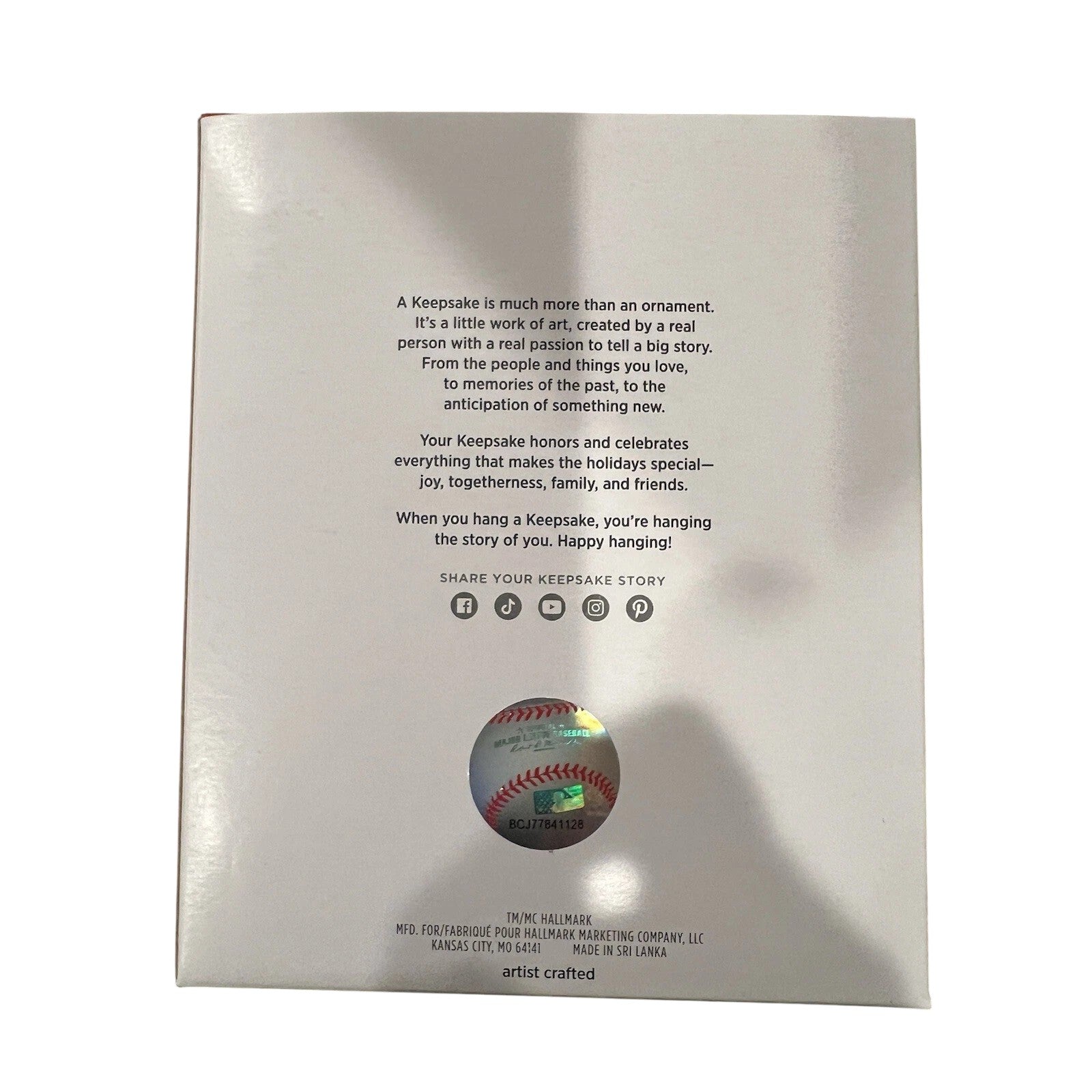 Celebrate a monumental moment in baseball history with the 2024 Aaron Judge Hallmark Keepsake Ornament. This meticulously crafted piece captures the New York Yankees' captain in mid-swing, embodying the power and precision that led him to break the American League single-season home run record. Crafted from durable plastic, the ornament measures approximately 2.25" x 4.9" x 4.4" and comes in its original gift box, making it an ideal collectible or gift for any baseball enthusiast.