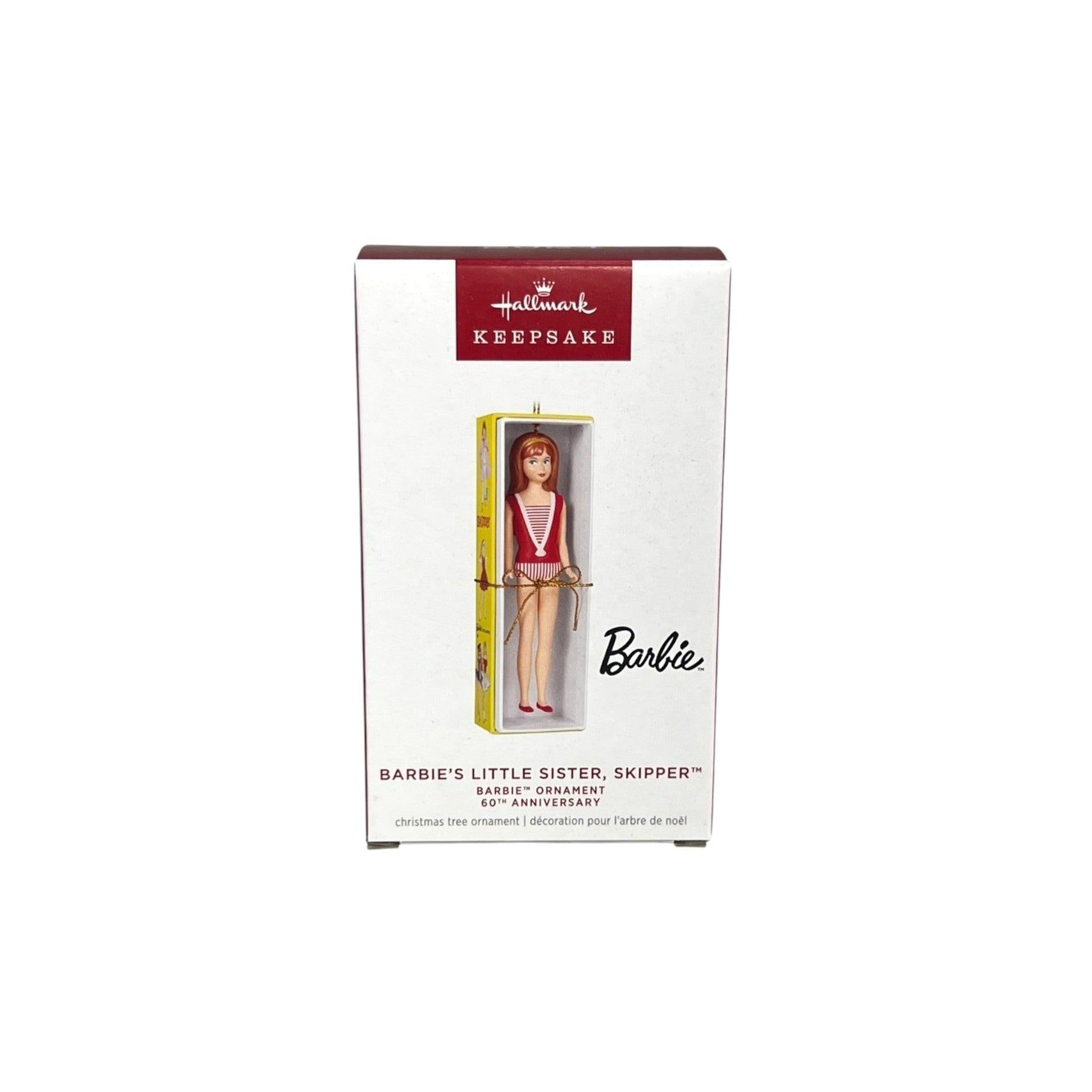 Celebrate 60 years of Skipper with this fun, nostalgia-packed ornament featuring Skipper in her classic red-and-white swimsuit, displayed inside a miniature replica of her original Mattel-style retail box—complete with vintage-inspired printing details for a true collector look. The ornament comes packaged in its original Hallmark box for safe storage and easy gifting. No batteries, cords, or light strings are required—it’s ready to hang right away.