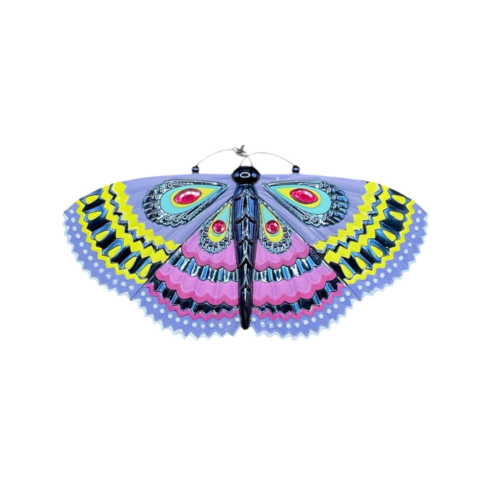 Bring enchantment to any season with this vibrant 2024 ornament from Hallmark’s Brilliant Butterflies series. Featuring a multicolored butterfly with scalloped, iridescent wings adorned with gemstone accents, metallic overlays, and pastel patterns, it’s as much art as ornament. Packaged in its original keepsake box with hanging cord included, this non-lighted piece requires no power, making it ideal for all-year décor or a thoughtful gift.