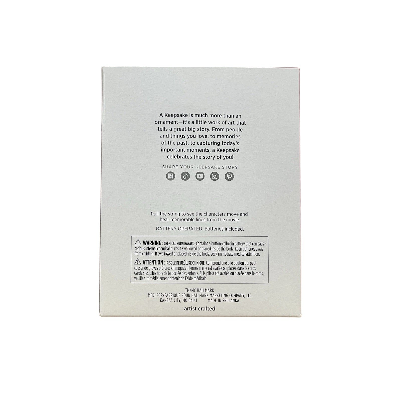 Celebrate the soaring spirit of Up with this lively 2024 ornament commemorating the film’s 15th anniversary. It features Carl and Russell clinging to a rope beneath the Up logo—with Carl below and Russell above, capturing their gravity-defying friendship. Pull the string to activate Magic Sound & Motion: the characters swing as memorable lines from the movie play, bringing the adventure to life. Comes mint in box with its original packaging. Powered by two (2) LR44 replaceable batteries (included), this collectible needs nothing more than a tug to launch your holiday décor into the skies.