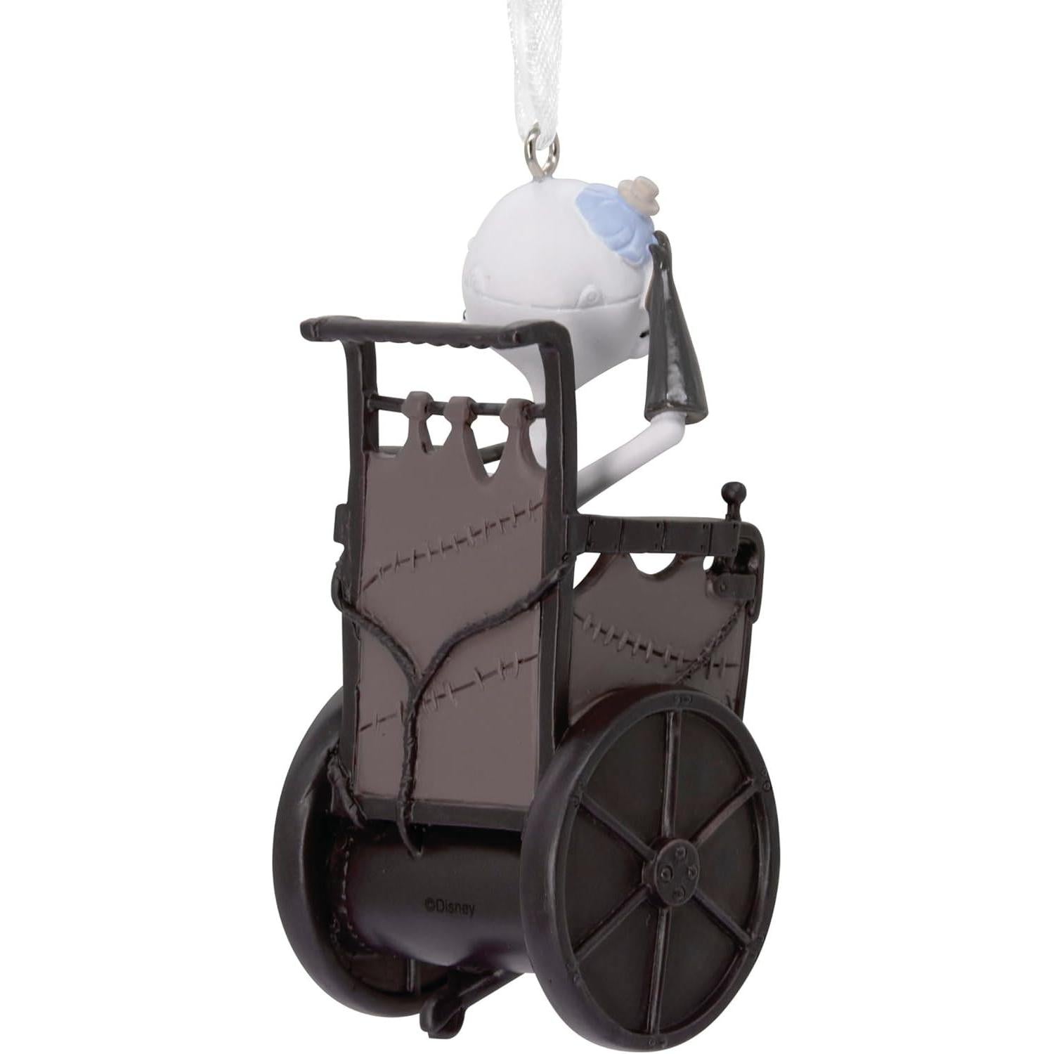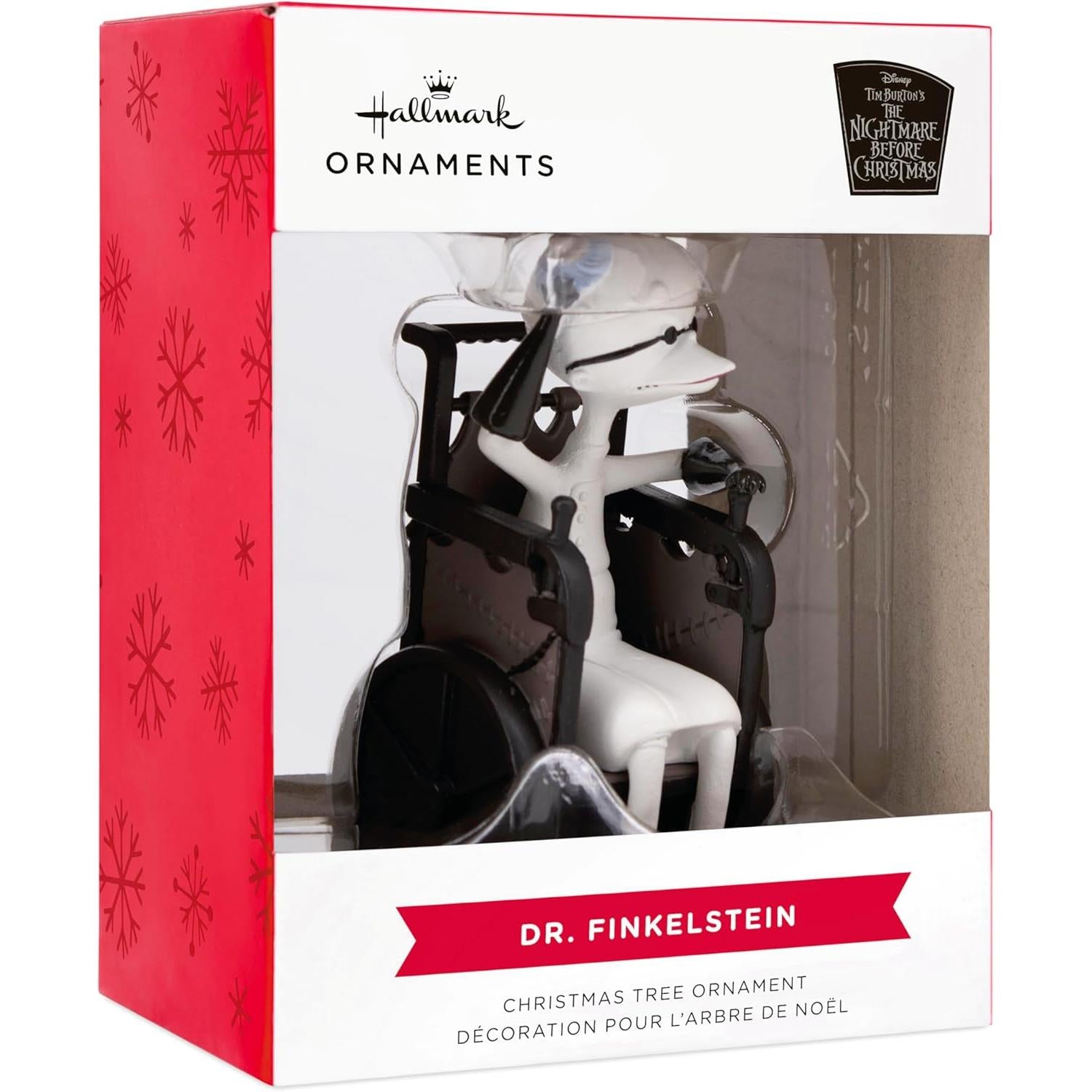 Add a touch of spooky charm and genius to your holiday décor with this Dr. Finkelstein ornament from Hallmark’s The Nightmare Before Christmas collection. Expertly sculpted in resin and plastic, the pale-as-a-ghost mad scientist is seated in his iconic wheelchair, complete with a detachable head he often holds—capturing his quirky character perfectly. This light-and-sound interactive ornament illuminates with a glow and responds to Hallmark’s Keepsake Power Cord (sold separately) to bring his haunting dialogue to life. Pair it with the matching Dr. Finkelstein’s Lab tree topper for even more interactive magic. Arrives mint in its original Keepsake box, this keepsake is a must-have for fans of Tim Burton’s visionary world.