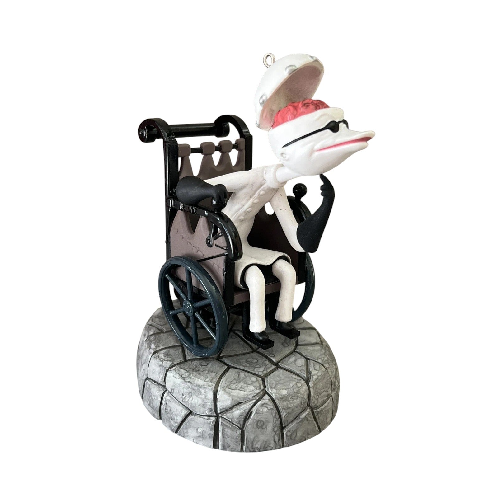 Step into the eerie lab of Halloween Town with the 2024 Dr. Finkelstein Magic ornament. Sculpted by Tammy Haddix, this interactive keepsake features the eccentric doctor in mid-experiment, complete with the classic light sequence and dialogue from the film. Simply connect it to Hallmark’s Keepsake Power Cord (sold separately) and press to watch lights dance and hear his eerie lines. Crafted in plastic and arriving fully assembled in its original box, it requires no batteries—just a bit of spooky charm to electrify your holiday display.