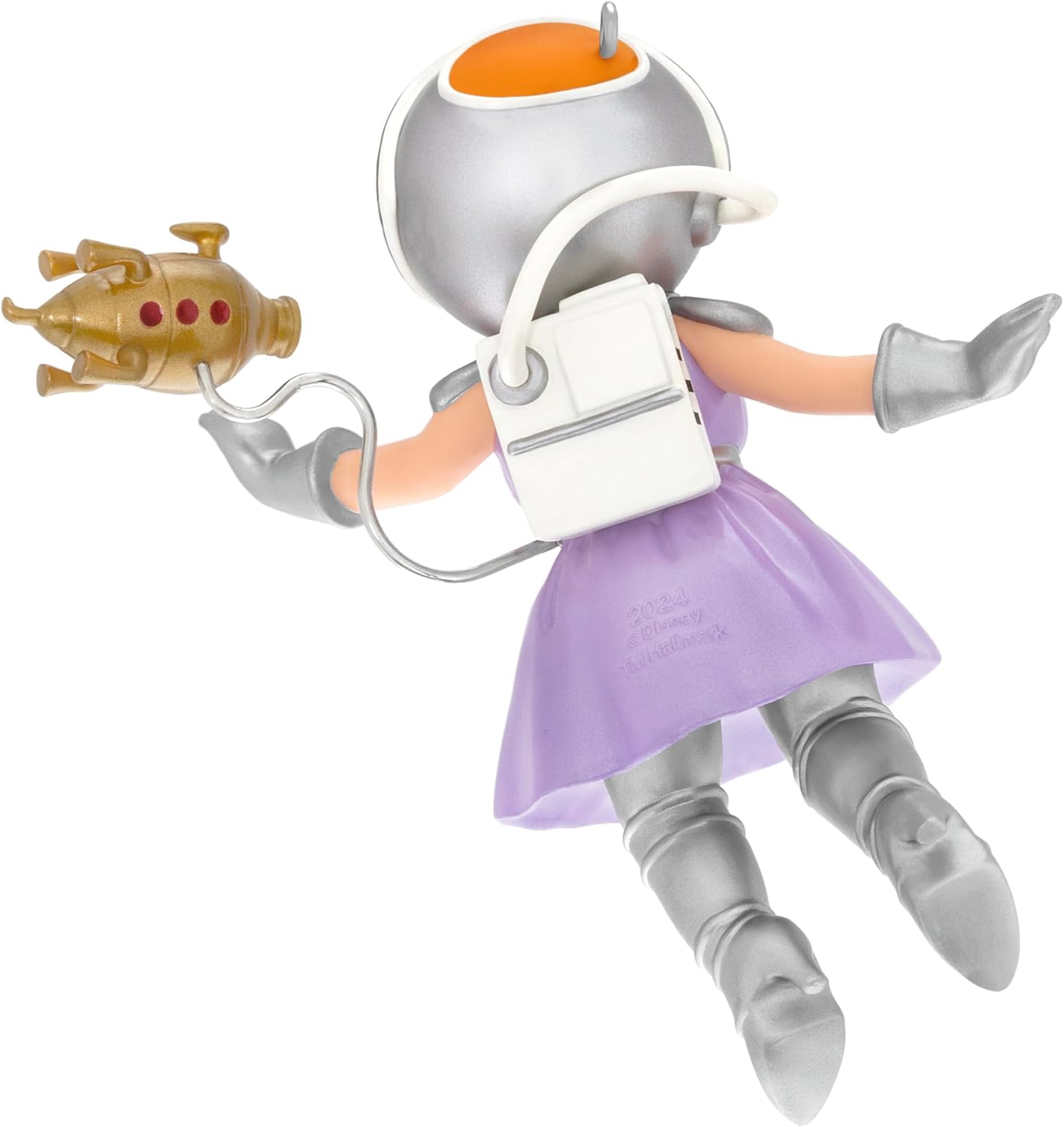 Celebrate the whimsical charm of The Muppet Show with the 2024 First Mate Piggy and The Swinetrek ornament. This delightful piece features Miss Piggy as First Mate Piggy, tethered to a miniature version of the team's spaceship, The Swinetrek, from the beloved "Pigs in Space" segment. Crafted by artist Kristina Gaughran, this ornament captures the humor and nostalgia of the classic TV show