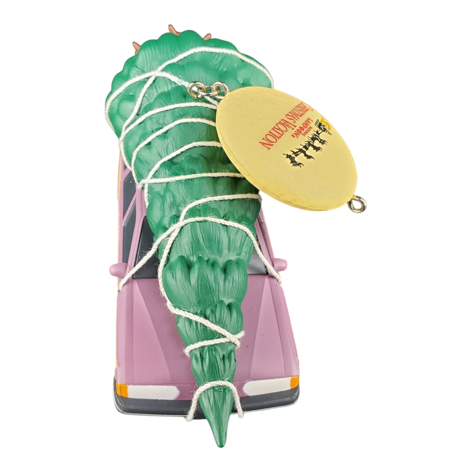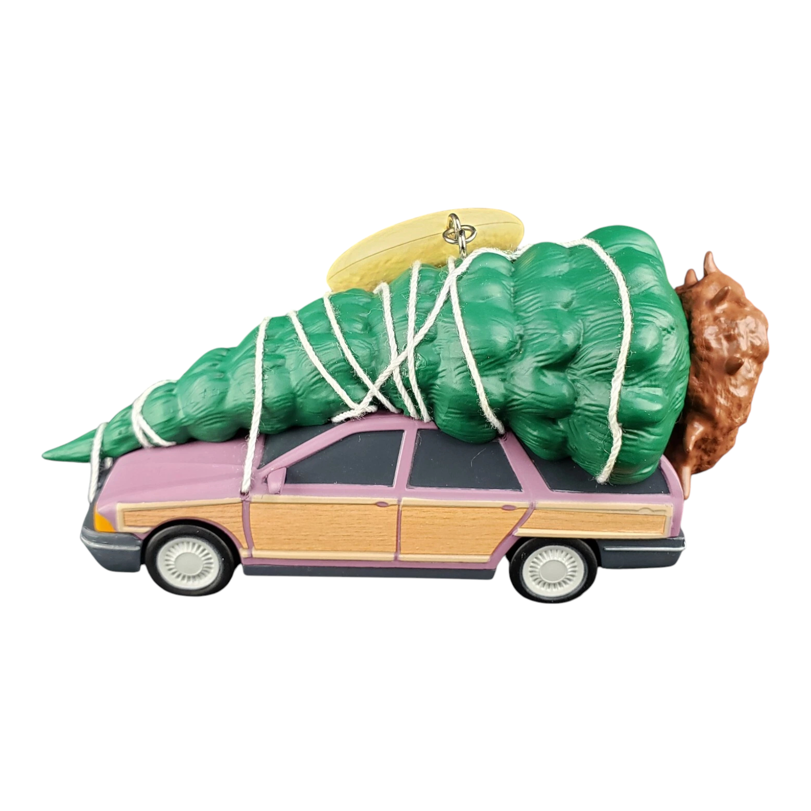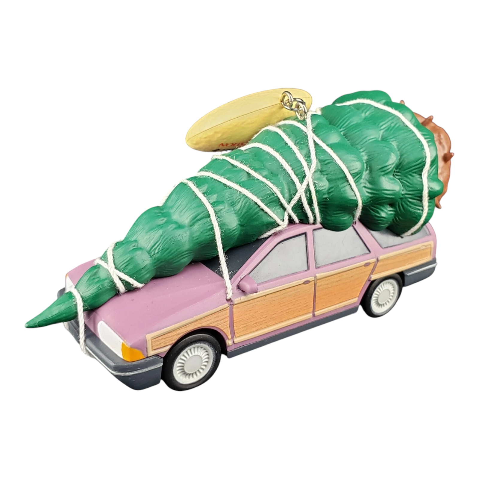 Celebrate the holiday chaos with the 2024 "Griswold Family Tree Haul" ornament inspired by National Lampoon's Christmas Vacation. This fun and festive design features Clark Griswold’s iconic station wagon, complete with the oversized Christmas tree precariously strapped to the roof—branches and all! Crafted with detailed accents and nostalgic charm, this ornament is perfect for fans of the holiday classic. Comes packaged in original Hallmark Keepsake packaging, including a commemorative box and tag. No batteries, cords, or power accessories required.