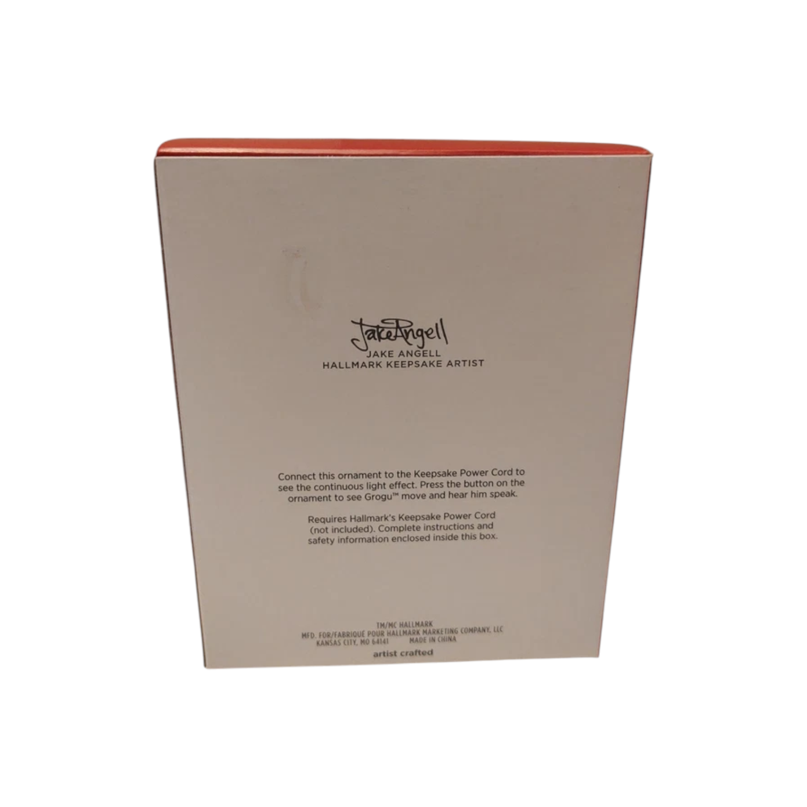 Add some adorable galactic charm to your holiday décor with this 2024 Hallmark Magic Light & Sound Keepsake ornament. Grogu (aka “The Child”) nestles in his hovering pram, poised with a gentle wave. When connected to Hallmark’s Keepsake Power Cord (sold separately), press the button to see the pram light up and hear him babble lines from The Mandalorian. Arrives dated, pre-hung, and housed in its original box—no batteries needed.