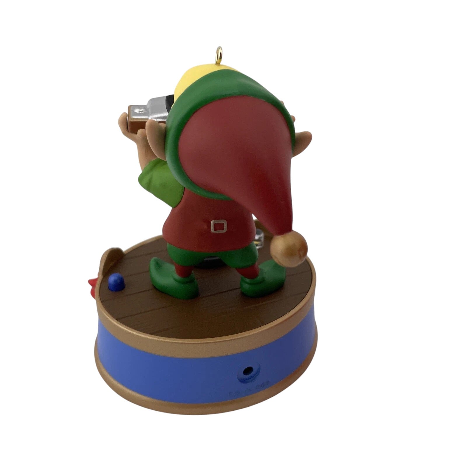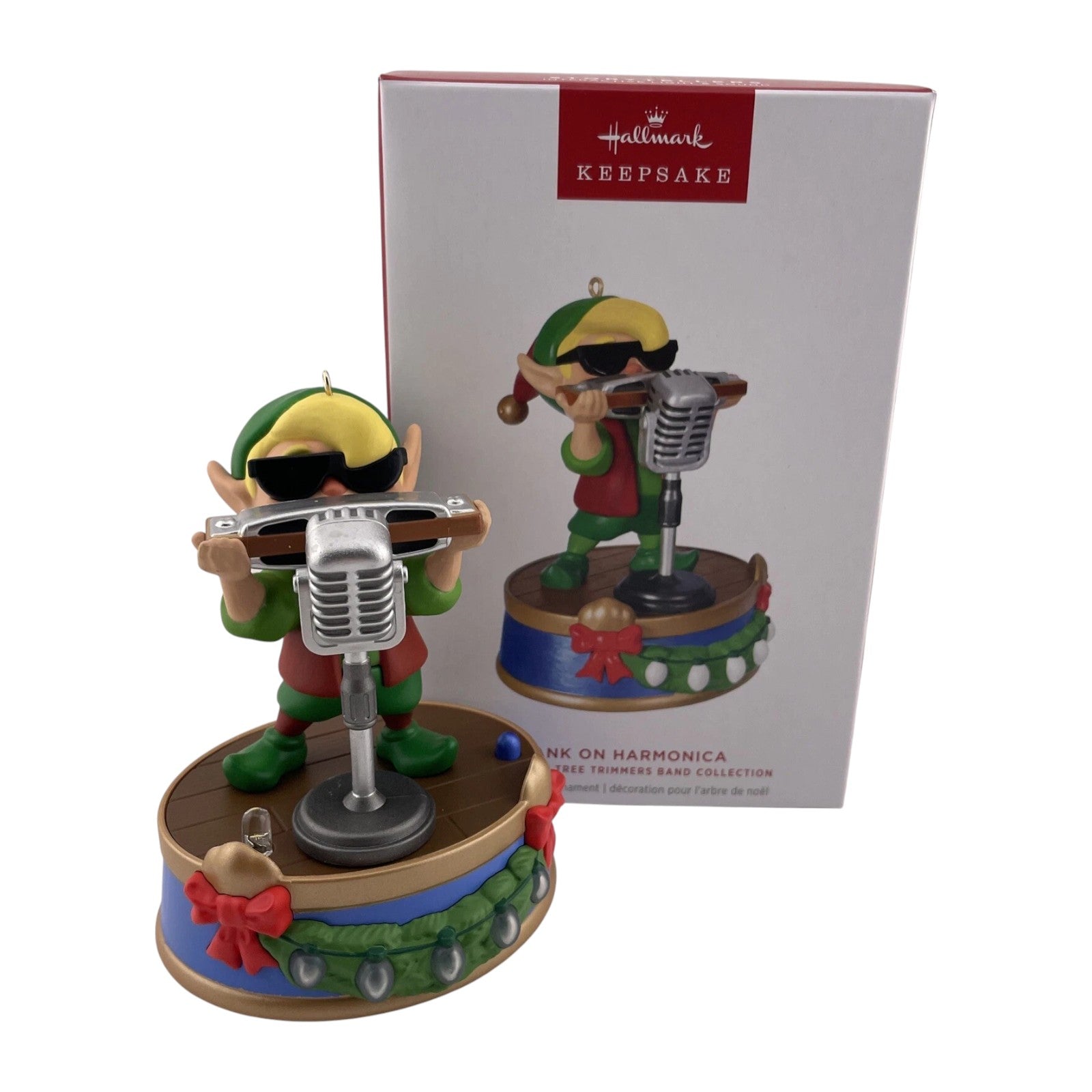 Bring a musical spark to your Christmas décor with 2024 Hank on Harmonica, part of the North Pole Tree Trimmers Band Collection. This ornament features Hank, a lively elf on stage, playing the harmonica while performing a cheerful version of “O Christmas Tree.” The piece includes interactive light and sound: connect it to Hallmark’s Keepsake Power Cord (sold separately) for continuous lighting effects, and press the button to hear the tune.