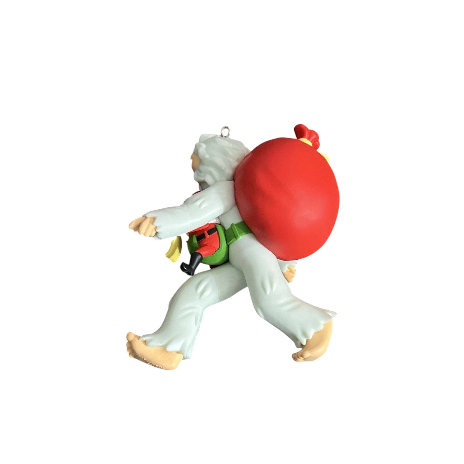 Embrace the whimsical spirit of the holidays with the 2024 Just Believe ornament. This delightful piece features Santa nestled in a baby carrier strapped to Bigfoot's chest, as the furry Sasquatch dons a white winter coat while carrying Santa's toy sack. With Santa riding "squatchgun" and holding his list like a map, this ornament is sure to bring a smile to any Bigfoot enthusiast's face. Crafted from durable plastic, this ornament comes in its original Hallmark Keepsake box, perfect for gifting or storage. No batteries, cords, or light strings are required to enjoy this humorous decoration