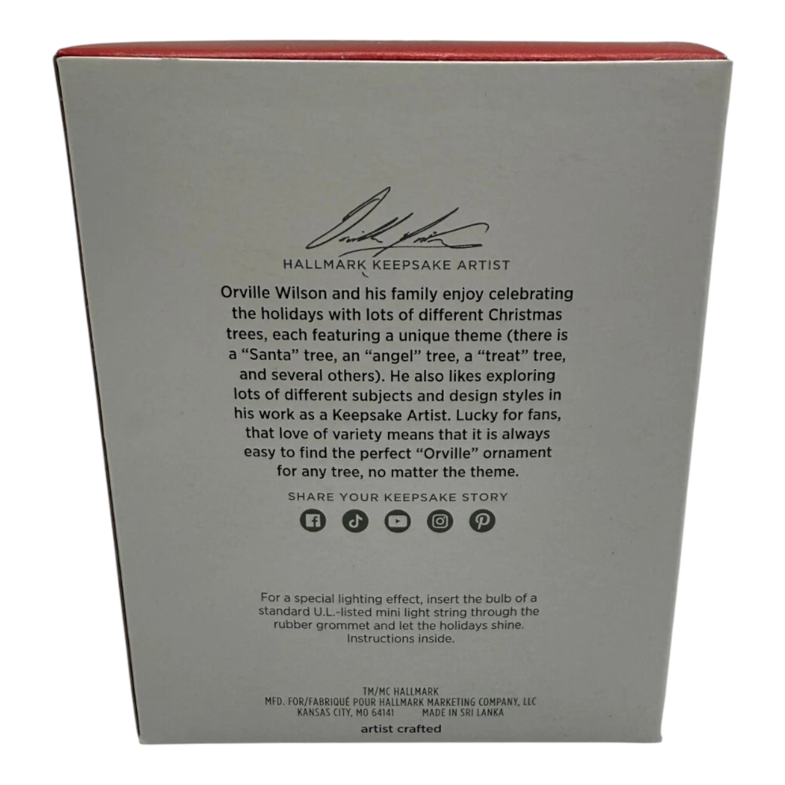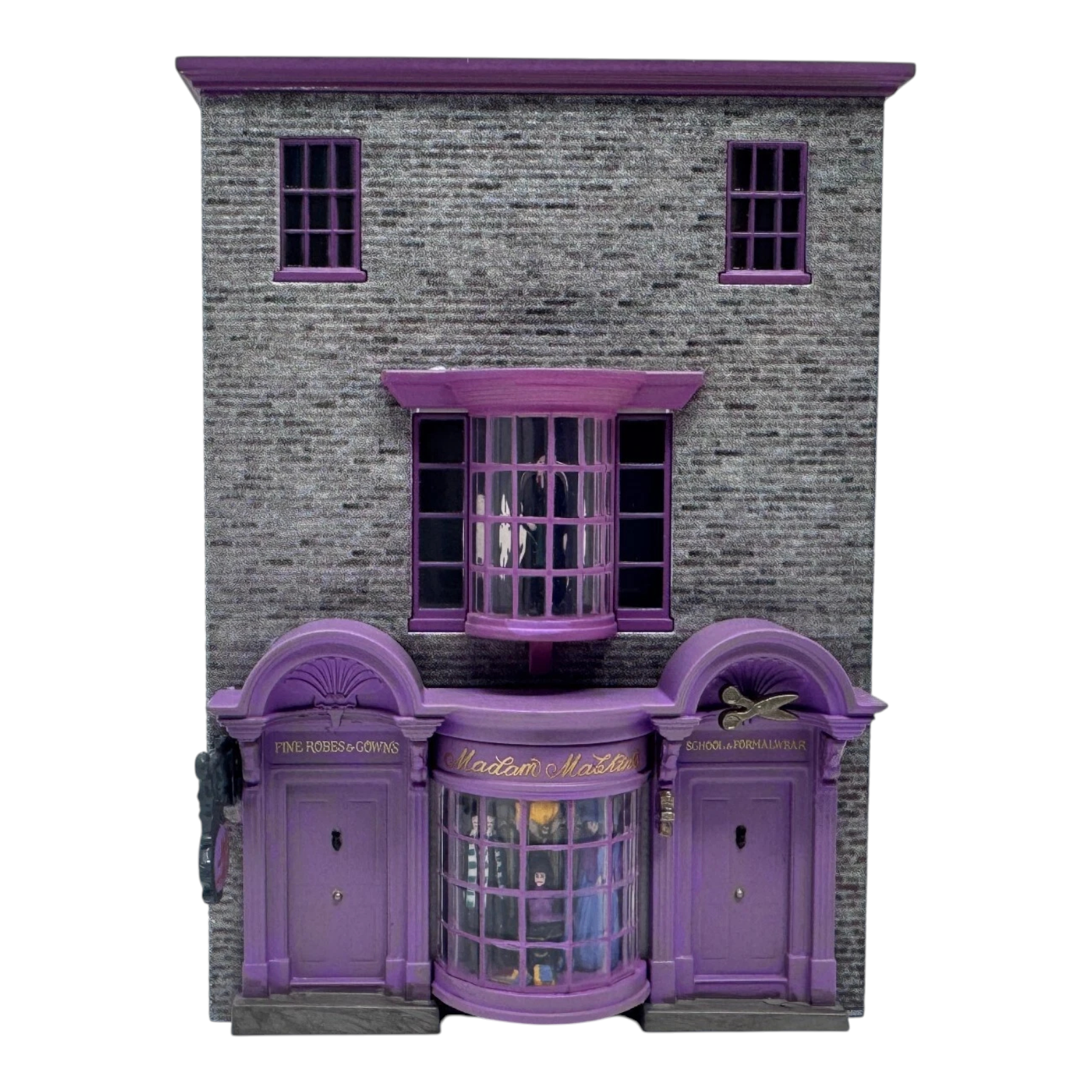 Step into Diagon Alley this holiday season with the 2024 Madam Malkin’s Robes for All Occasions ornament from the Harry Potter series. This intricately sculpted plastic keepsake, designed by Orville Wilson, charmingly depicts the quaint gray-brick exterior of Madam Malkin’s robe shop, complete with a purple-painted entrance and a finely detailed window scene. A built-in rubber grommet allows you to insert a mini light bulb from a certified light string to gently illuminate the interior—no power box or batteries required. Arriving fully assembled in its original Hallmark Keepsake box, it’s ready to hang and enchant any festive display.