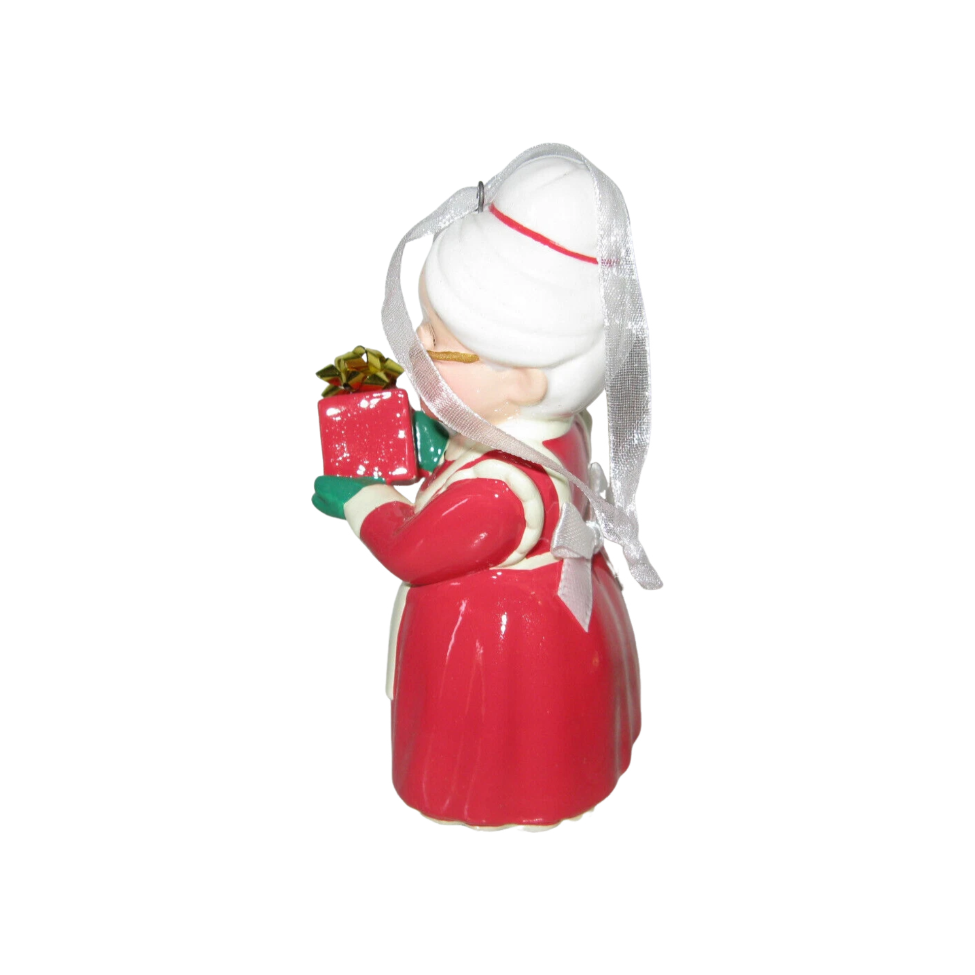 This 2024 Keepsake ornament features a cheerful Mrs. Claus carrying a tray of warm holiday cookies, styled in her classic red dress with festive apron and spectacles. Her kind expression and detailed sculpting capture the cozy spirit of Santa’s workshop and the warmth of homemade Christmas treats. Perfect for kitchen-themed trees, Santa collections, or anyone who loves classic holiday characters. The ornament comes in its original Hallmark box and requires no batteries, cords, or power accessories.
