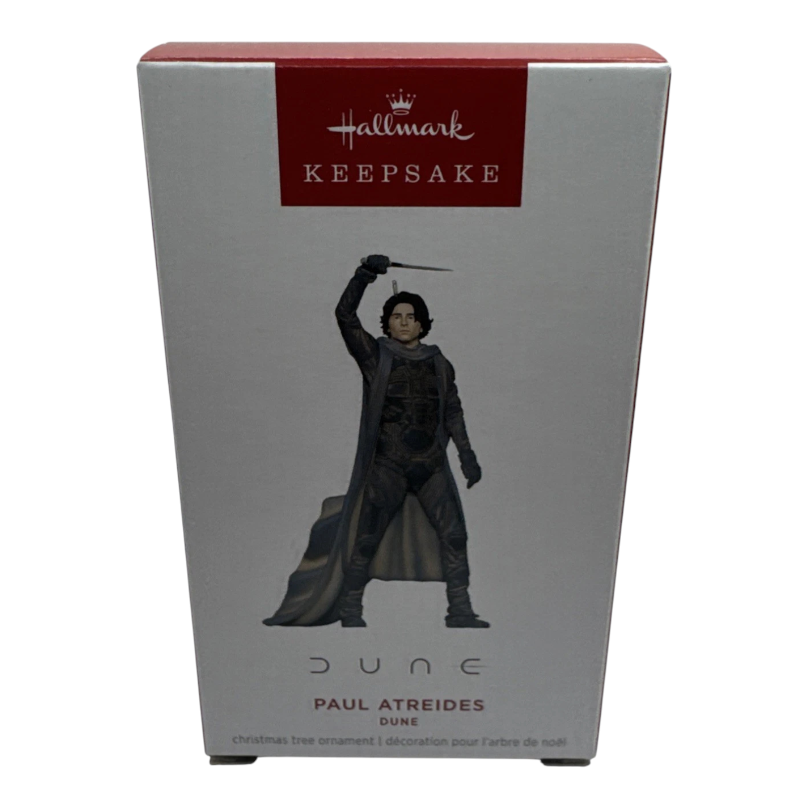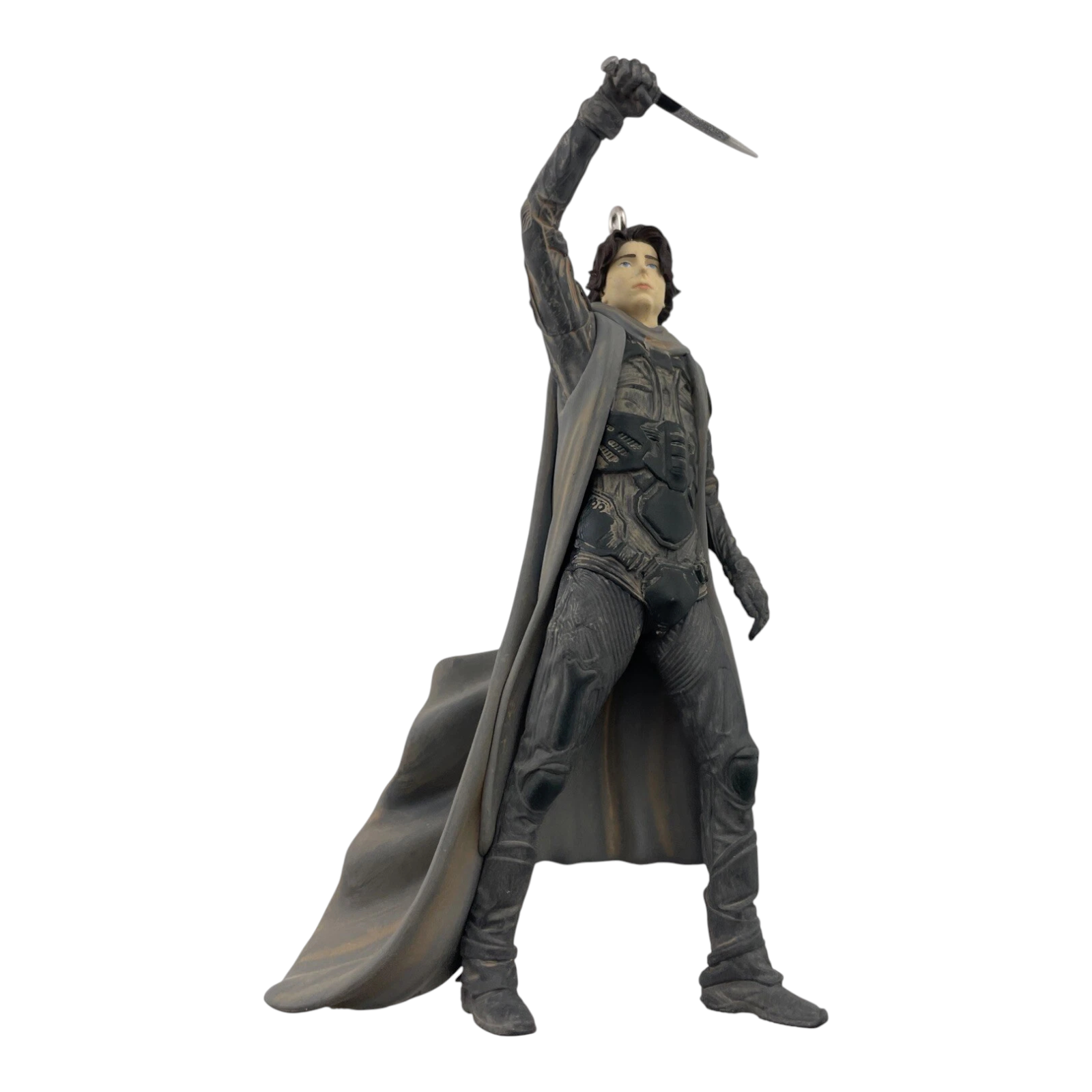 Stand with the fighters of Arrakis! This year’s Hallmark Keepsake ornament brings the legend of Dune to your holiday décor with Paul Atreides, crysknife raised high—an evocative symbol of rebellion against House Harkonnen. Captured in finely-painted plastic and arriving mint in box, this static ornament delivers cinematic gravitas and sci-fi flair—no batteries or extra setup required.