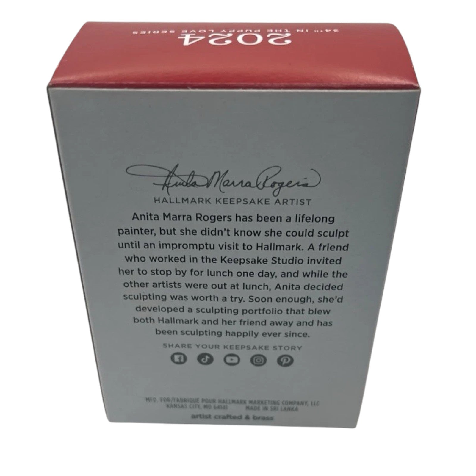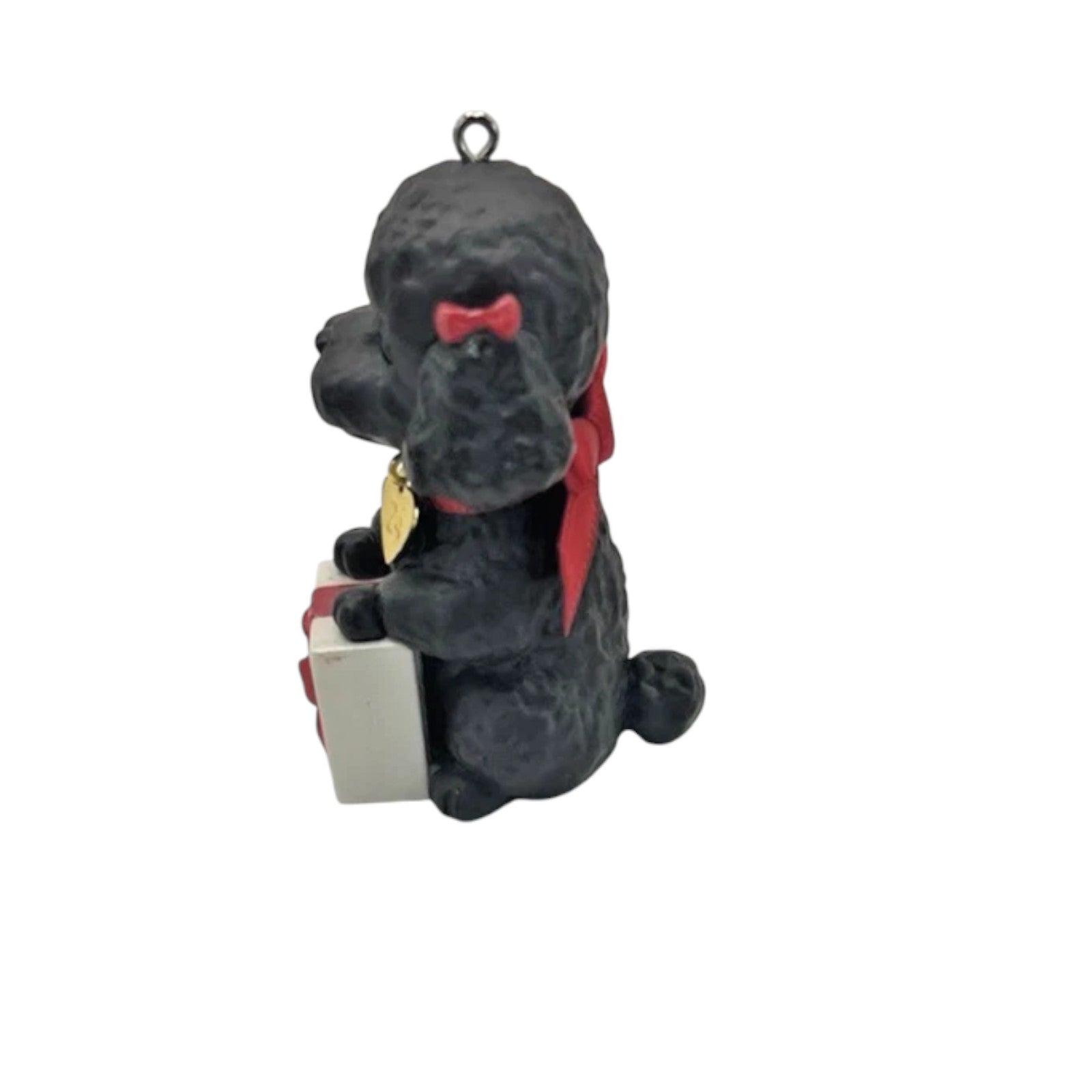 This year’s Puppy Love series brings you the 2024 Poodle (Puppy Love #34), a charming addition for dog lovers and ornament collectors alike. The design features a sleek black poodle, fresh from the salon, sporting festive red bows in its ears and a matching red bow around its neck. The pup rests its front paws atop a present, ready for some holiday fun, and a brass heart charm stamped “24” dangles from its collar to mark the year.