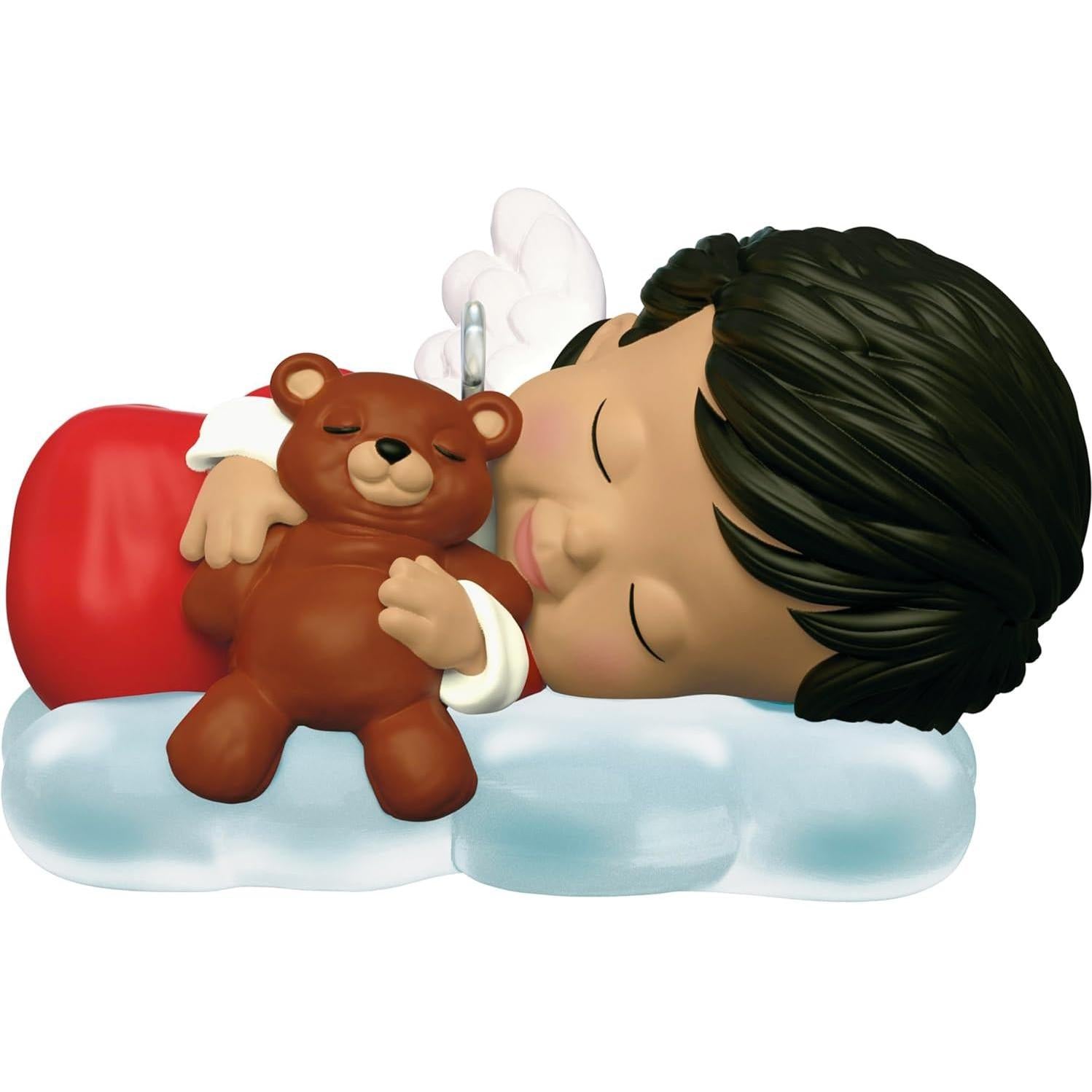 Embrace the serenity of the season with the 2024 Poppy Hallmark Keepsake Ornament, the 37th addition to the cherished Mary's Angels series. This heartwarming ornament features Poppy, a sweet celestial figure with a peaceful expression, nestled on a soft, puffy cloud while cradling a teddy bear. Her delicate wings shimmer with a pearlescent finish, adding a touch of ethereal beauty. Crafted from durable plastic and designed by artist Jake Angell, Poppy comes packaged in her original Hallmark gift box, making her a perfect gift for collectors and a delightful addition to any holiday décor. No batteries, cords, or light strings are required—simply hang and enjoy the festive charm.