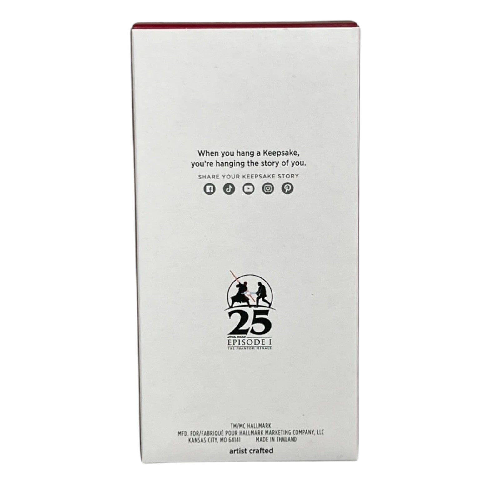 Honor the wise and valiant Jedi Master Qui‑Gon Jinn in this beautifully detailed 2024 Hallmark Keepsake ornament. Capturing his poised stance from The Phantom Menace, he grips his green lightsaber ready for action. The ornament comes pre-hung with a silver hanger, dated and nestled in its original keepsake box—no batteries, cords, or adapters required. A perfect tribute to a beloved character and a standout piece for any Star Wars collection.
