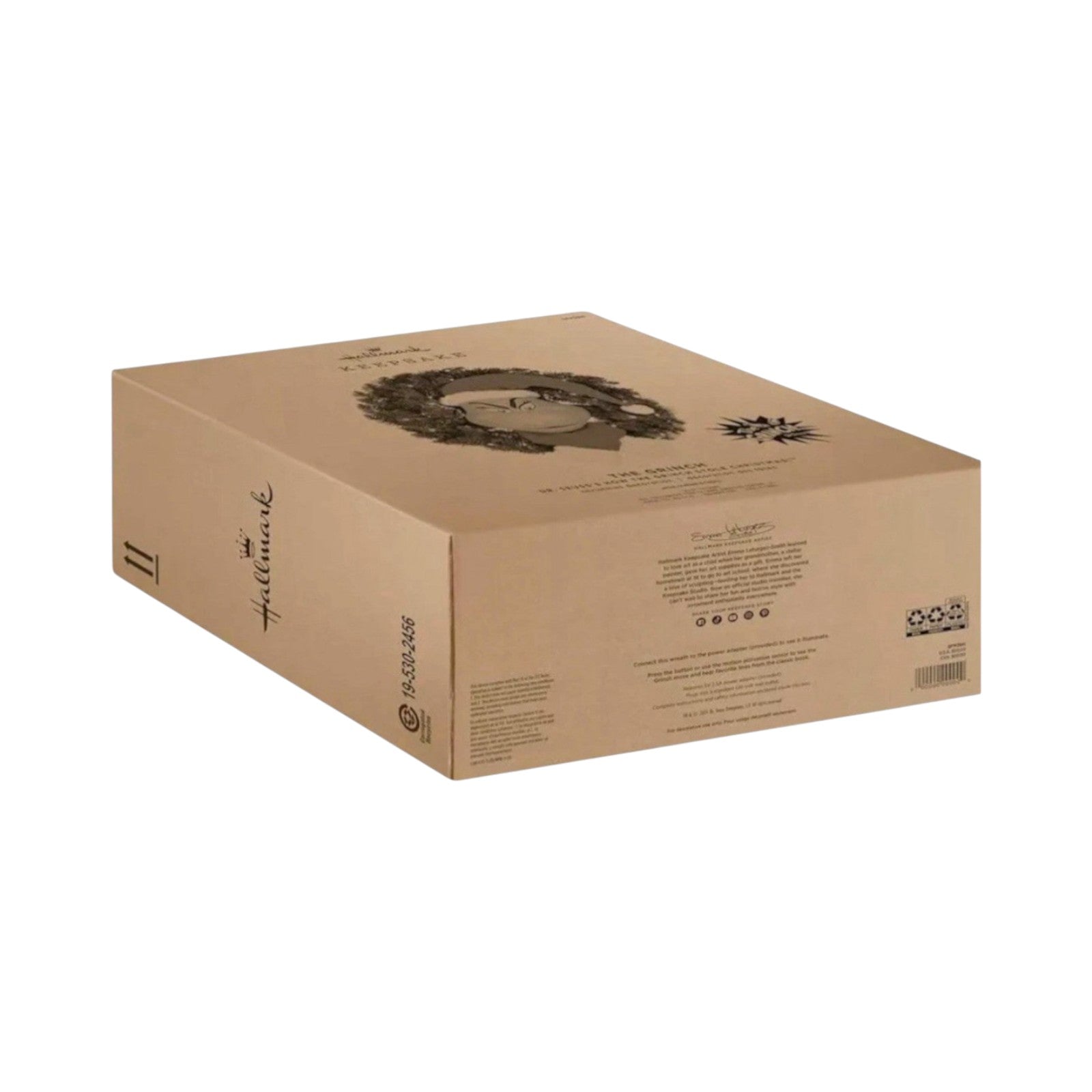 Make your door or wall the star of Whoville with this 2024 Grinch Wreath from Dr. Seuss’s How the Grinch Stole Christmas! The design is a full-sized green wreath with twinkling LED lights and the Grinch peering through the center, wrapped in a fabric Santa hat and matching red scarf for that perfectly grumpy-festive look. This is a Hallmark Magic Light, Sound, and Motion wreath: once connected to the included power adapter, the LEDs glow, and with a button press or motion activation, the Grinch moves and speaks memorable lines from the classic story. The wreath comes packaged in its original Hallmark Keepsake wreath box with protective inserts and dated product packaging.