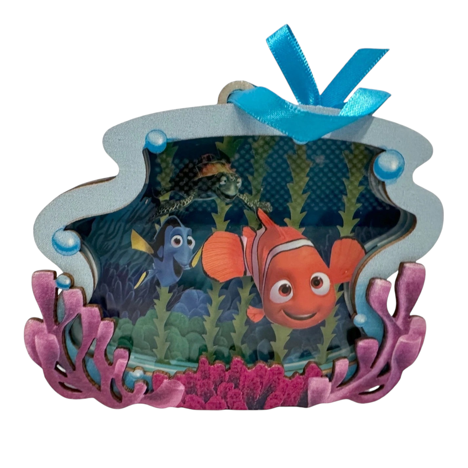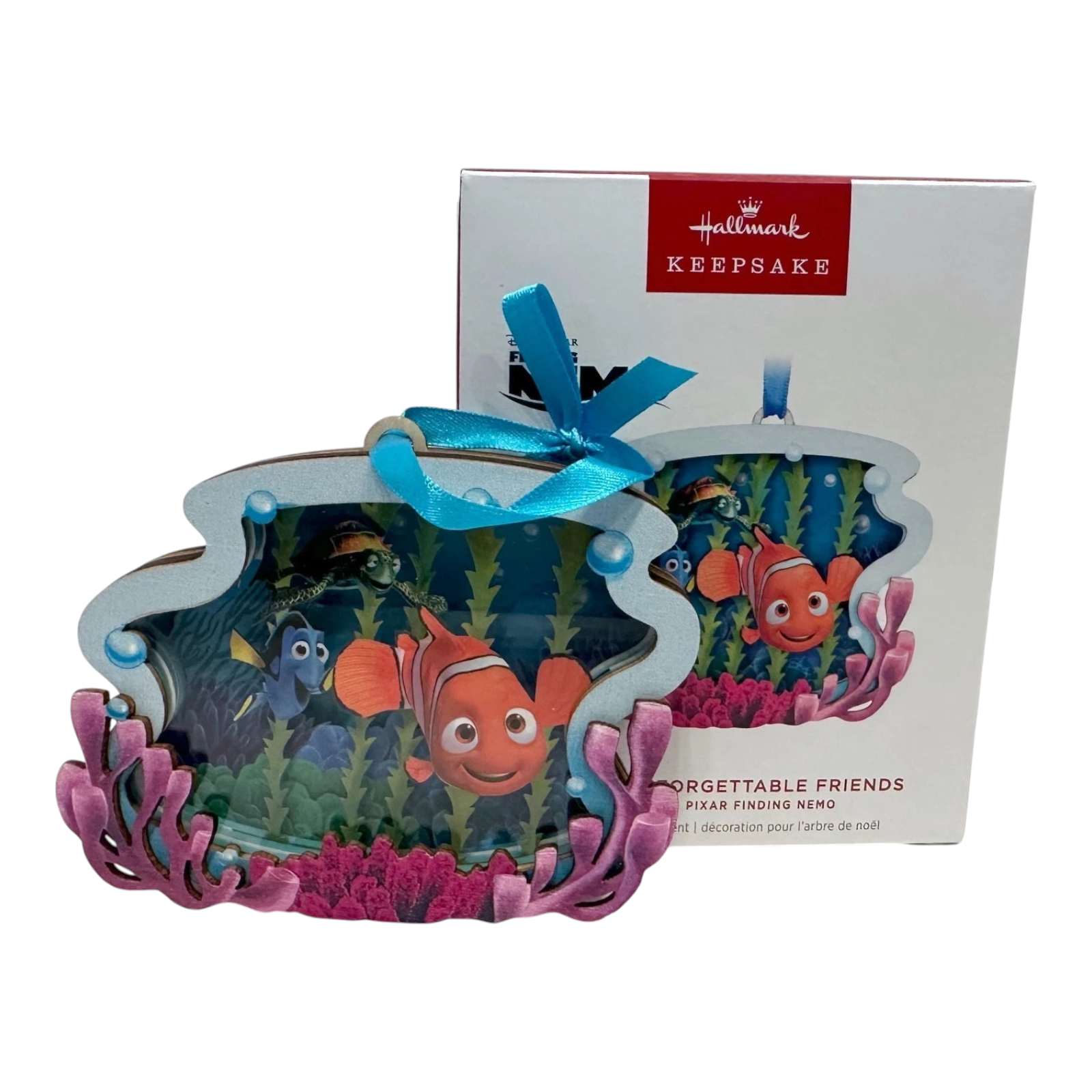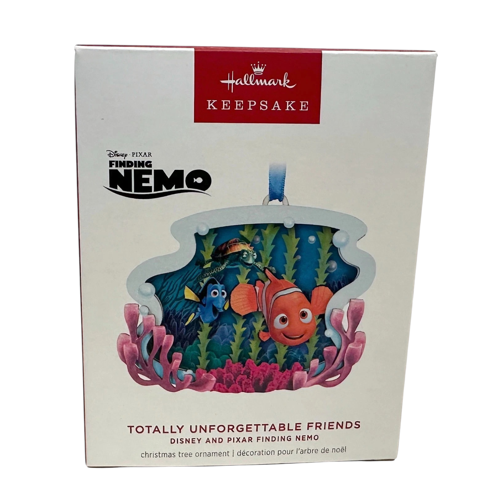 Celebrate friendship and adventure with the 2024 Keepsake Ornament from the Disney/Pixar “Finding Nemo” theme, titled Totally Unforgettable Friends. This ornament features beloved characters Nemo, Dory, and Crush in an intricate papercraft-style design, framed by laser-cut wood, with textured paper and plastic layers adding depth and visual interest. Created by artist Terri Steiger, the piece captures the joyous camaraderie of the film’s ocean friends, making it perfect for Disney fans, Pixar collectors, or those seeking a unique holiday décor piece.