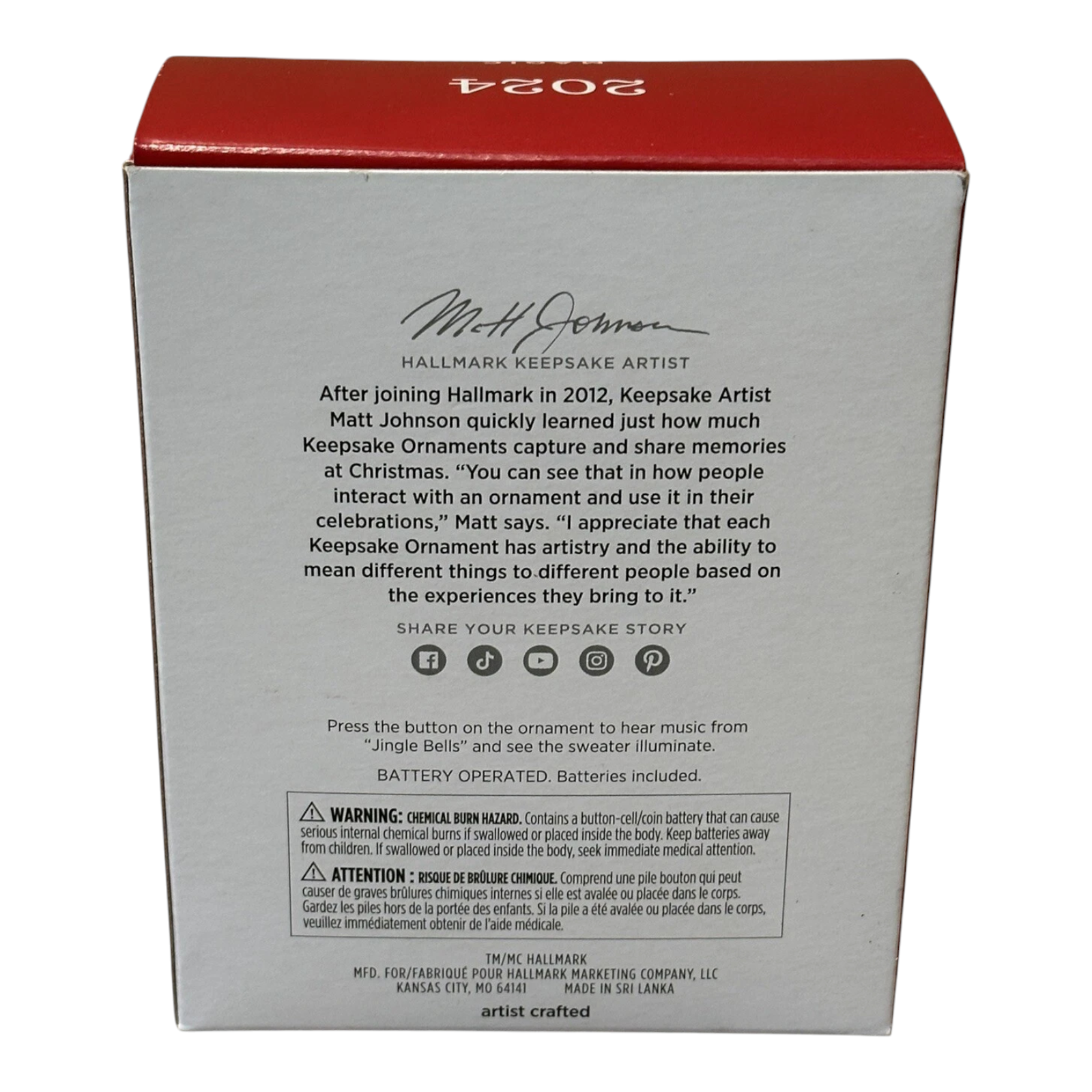 Celebrate the hilarity of National Lampoon’s Christmas Vacation with the Ugly Sweater ornament. This Magic-series Keepsake features a festive sweater decked out with the iconic moose mug, colorful string lights, and the cheeky message “Merry Christmoose.” Press the button to light up the sweater and hear a cheerful version of “Jingle Bells.”