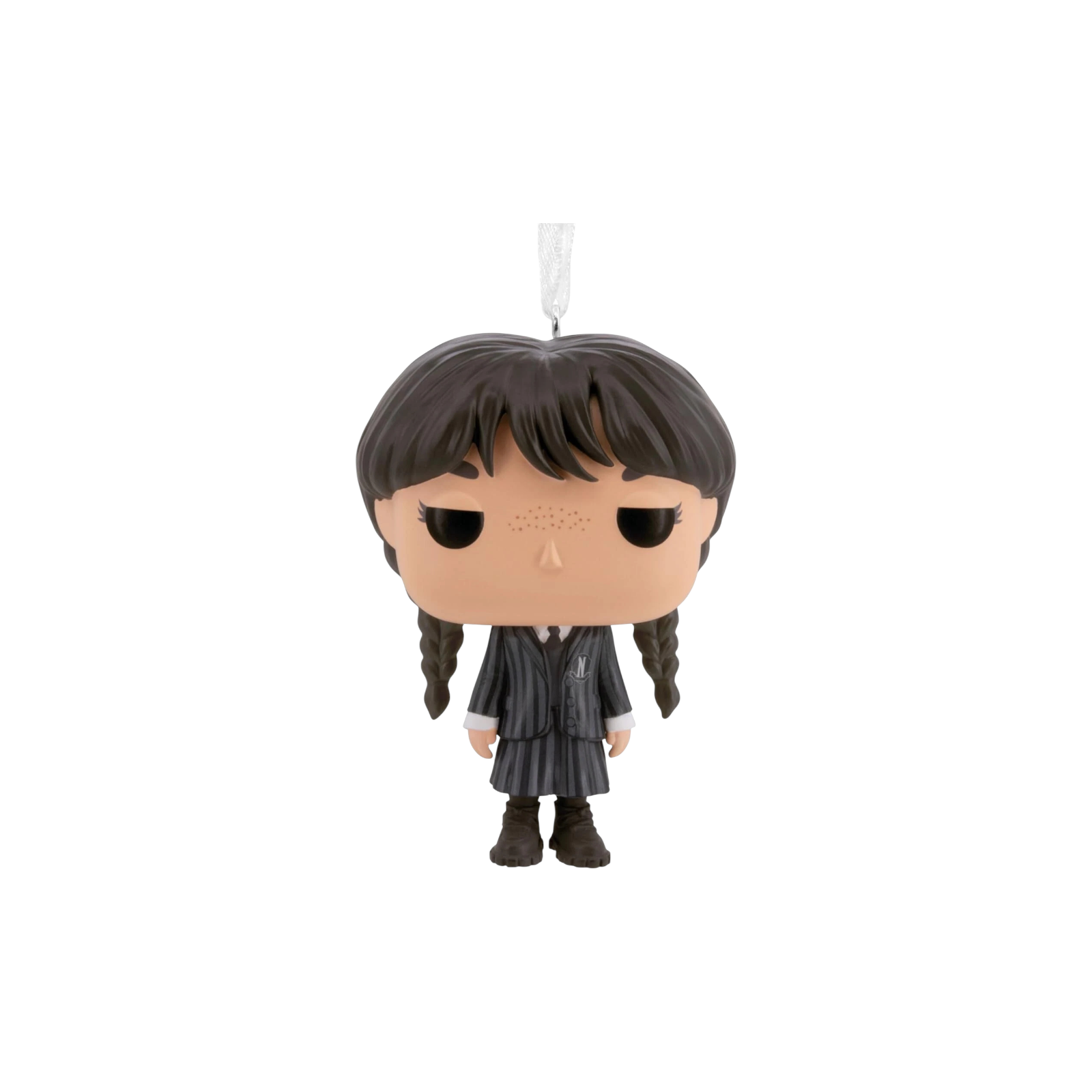 Brighten your holiday collection with a mysterious twist—this Wednesday Addams Funko Pop! ornament beautifully blends the iconic gothic charm of Netflix’s Wednesday with Funko’s distinctive stylized form. She’s perched in her signature Nevermore Academy uniform, complete with braided hair and side-tilted head, perfectly embodying her deadpan poise. Crafted from resin with a built-in hanger, this quirky collectible arrives mint in its original Keepsake box, making it a standout holiday gift for fans of the eerie and elegant.