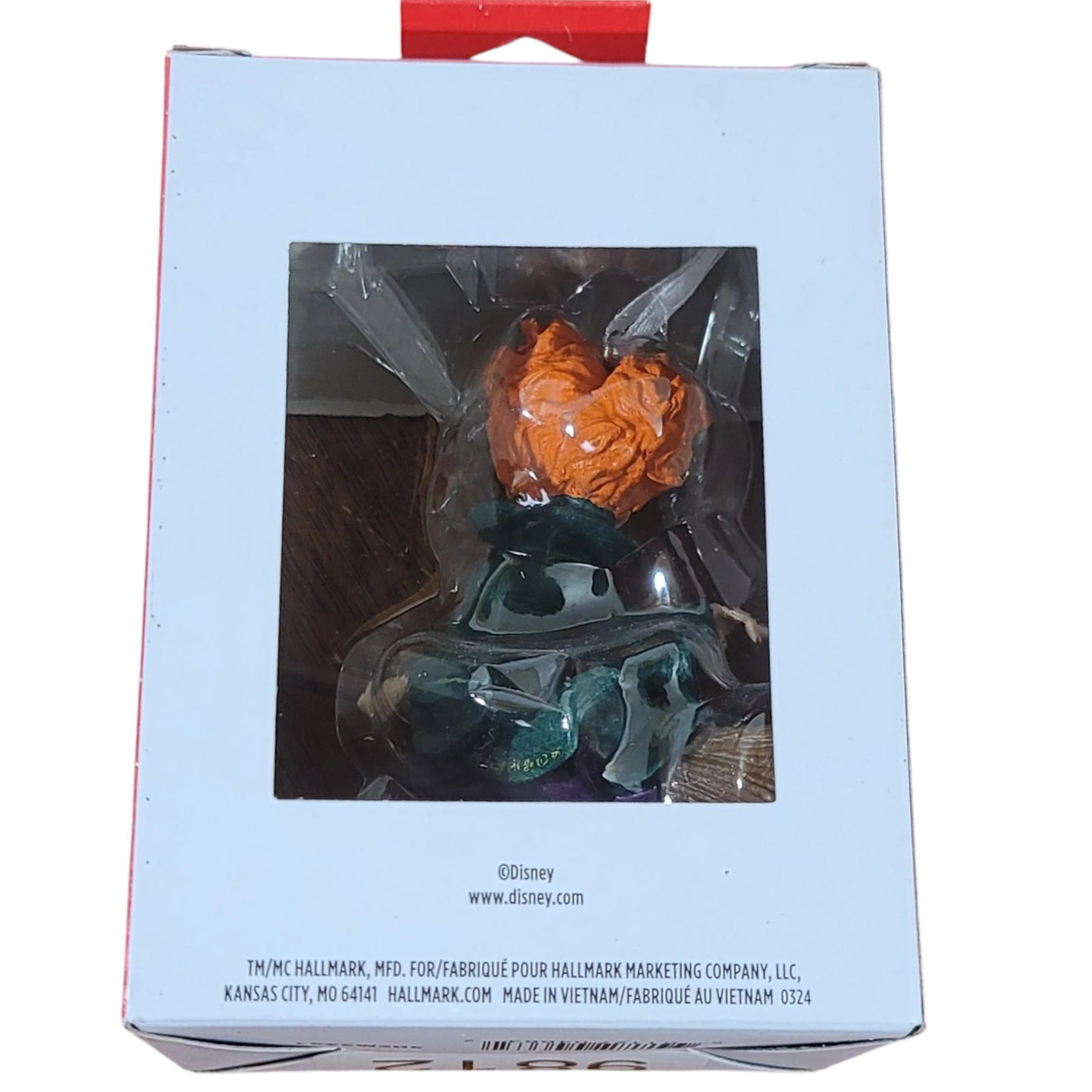 Add a bewitching touch to your holiday décor with this Winifred Sanderson ornament from Hallmark’s Hocus Pocus collection. Dressed in her signature emerald green gown with intricately patterned sleeves and vibrant orange hair, Winifred perches confidently on her broomstick and clutches her spellbook—channeling her wicked yet lovable charm. Crafted in resin and arriving mint in its original Keepsake box, it's a perfect treat for fans of Hocus Pocus and those who love a playful Halloween vibe with festive flair