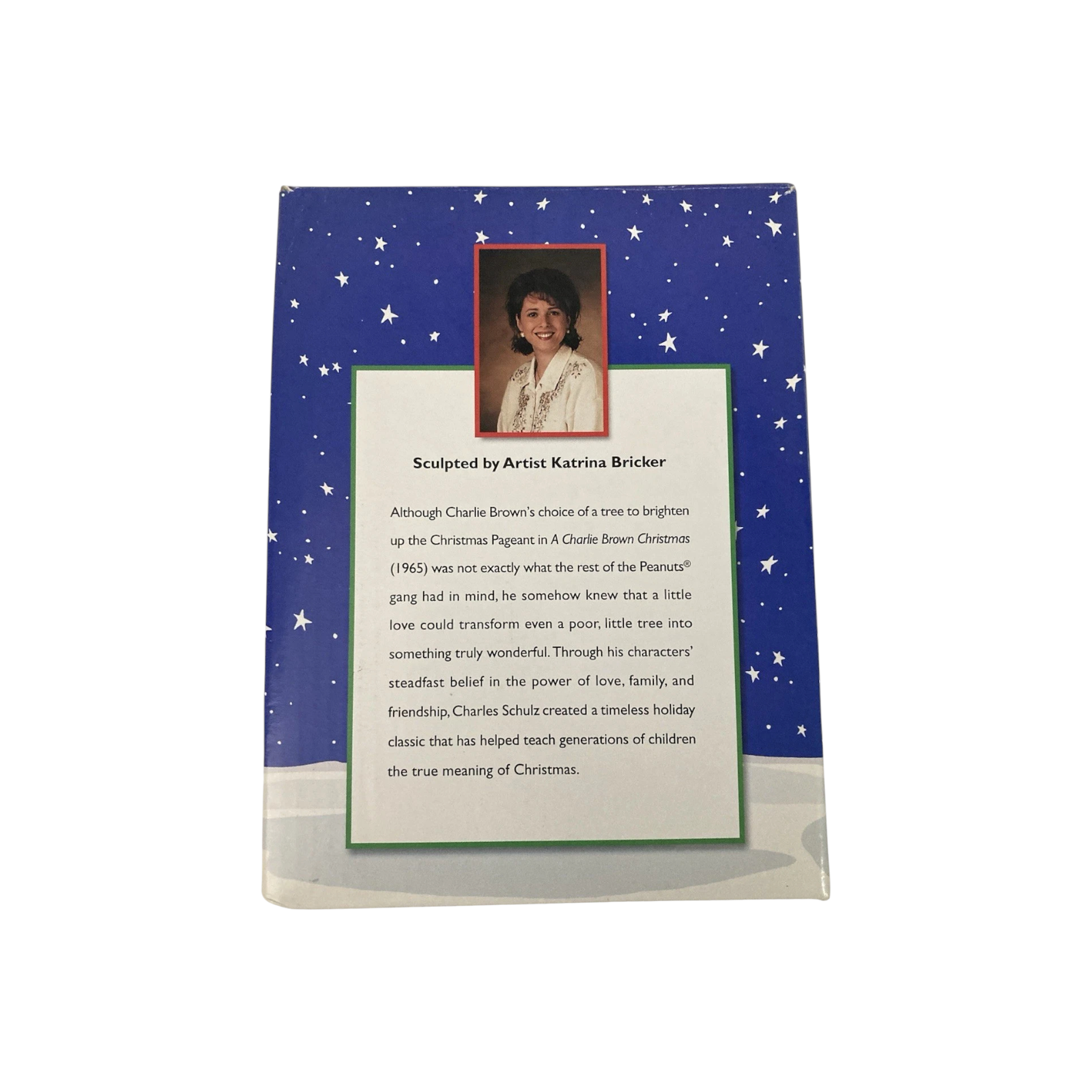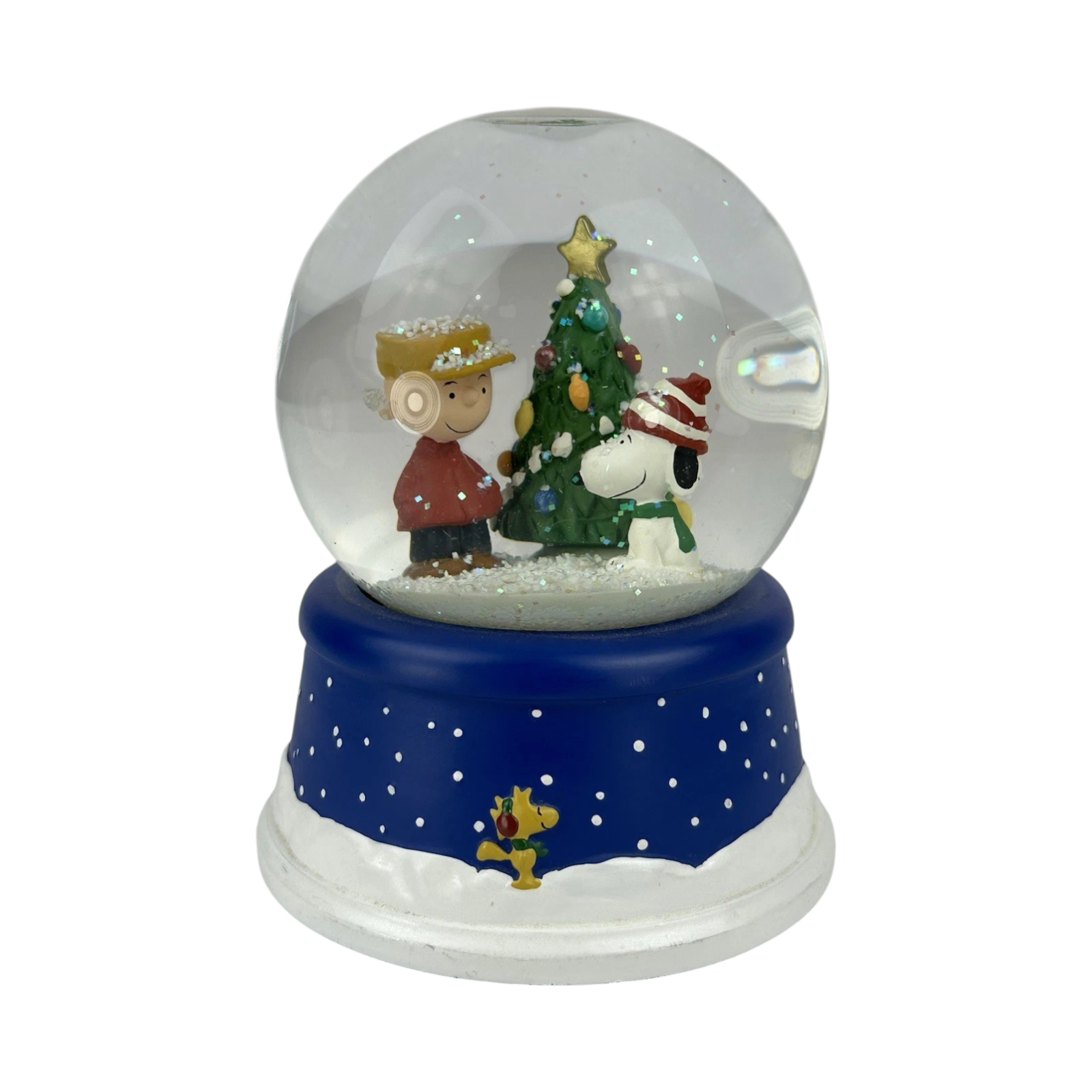 Celebrate 50 years of Peanuts magic with the 2000 Hallmark Peanuts 50th Anniversary Musical Snow Globe (PR2058). This charming collectible features Charlie Brown and Snoopy standing beside a decorated Christmas tree, encapsulated within a glass globe. When wound, it plays the iconic "Linus and Lucy" tune, bringing festive cheer to any setting. The base is adorned with a snowy landscape and a miniature Woodstock, adding to its nostalgic appeal. Crafted with attention to detail, this snow globe is a delightful addition to any Peanuts collection.