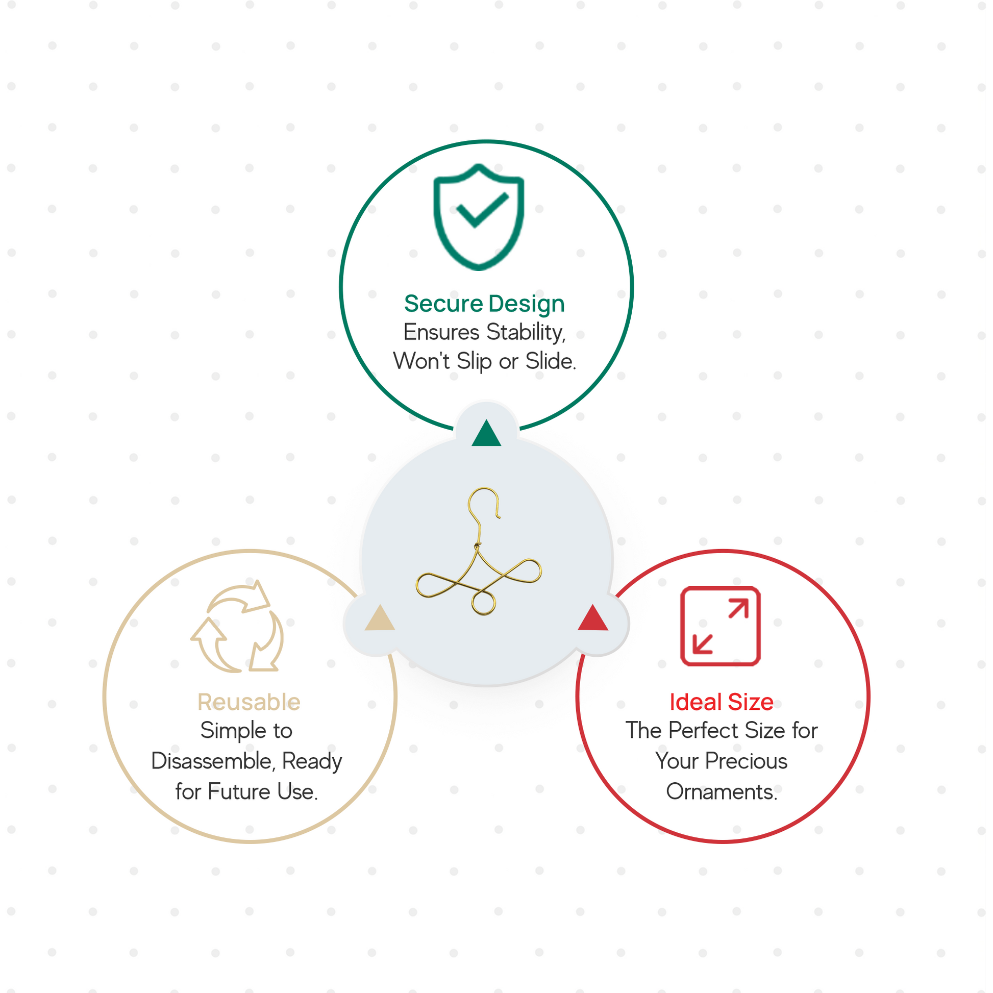 - Each hook holds up to 3 mini ornaments securely and stylishly