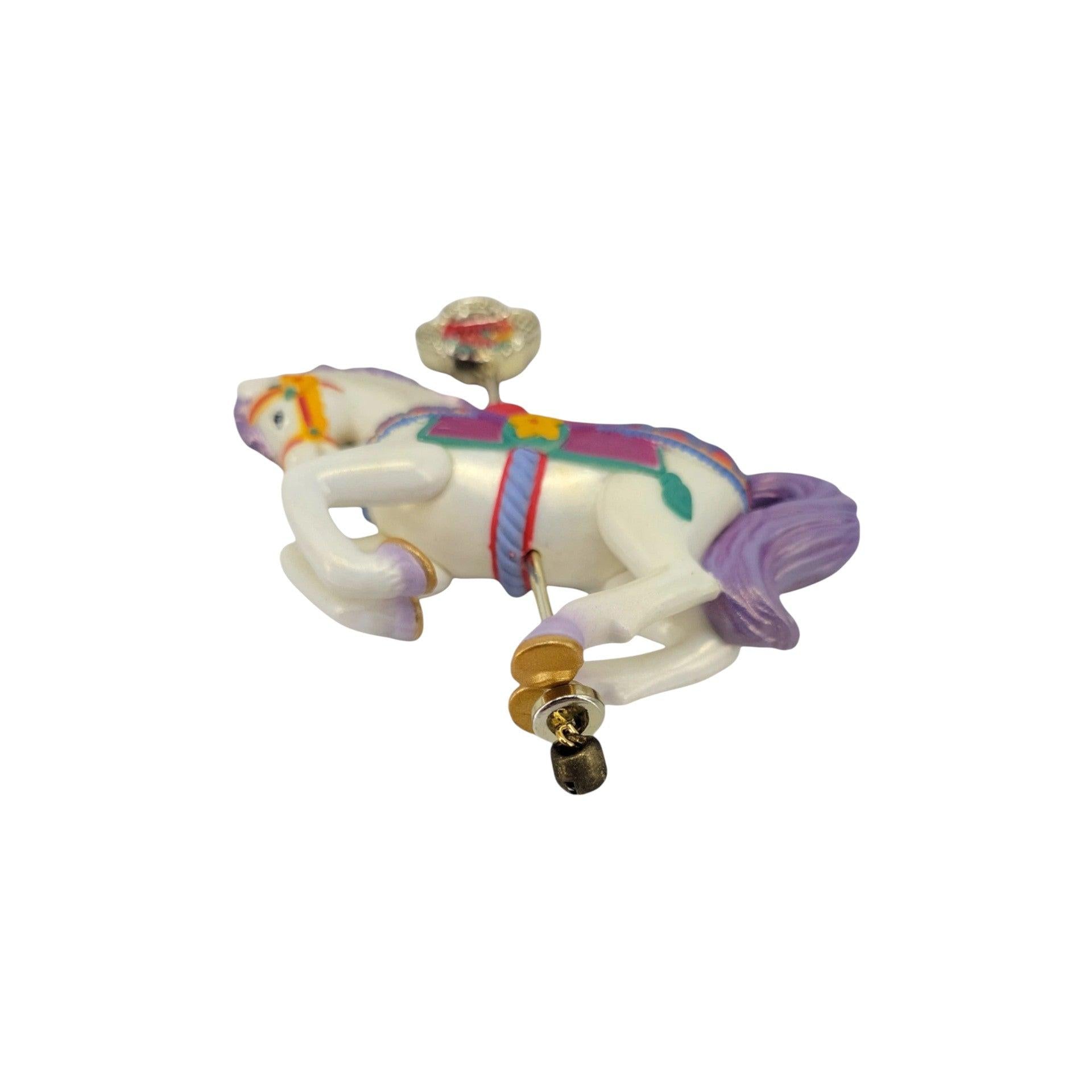 This Christmas-Go-Round 93 ornament from Carlton Cards celebrates the joy of the holiday season with a carousel horse motif richly decorated in classic Christmas colors — perfect for collectors and those building a themed tree display. It was released as part of the 2005 Carlton Cards Heirloom Ornament Collection, where each Christmas-Go-Round piece features beautifully painted carousel figures ideal for holiday décor. The ornament typically includes the piece itself and, when available, the original Carlton Cards box and tag. This piece is purely decorative and does not require batteries, power cords, lights, or other power accessories.