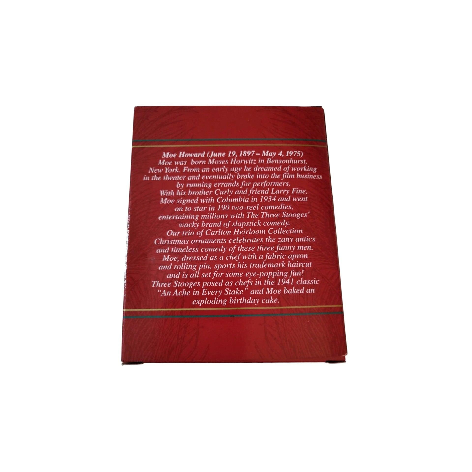 This vintage Carlton Cards ornament depicts the beloved slapstick comedy trio — The Three Stooges — in a whimsical Cooking Up Trouble design that captures their classic comedy antics with holiday flair. Produced in 2001 as part of Carlton’s licensed Heirloom Collection, this ornament is molded with colorful plastic and detailed paint, and it typically includes the original box when available. It’s a fun collectible for both holiday decor and fans of classic comedy. The ornament is decorative only and does not require batteries, cords, lights, or any power accessories to function.