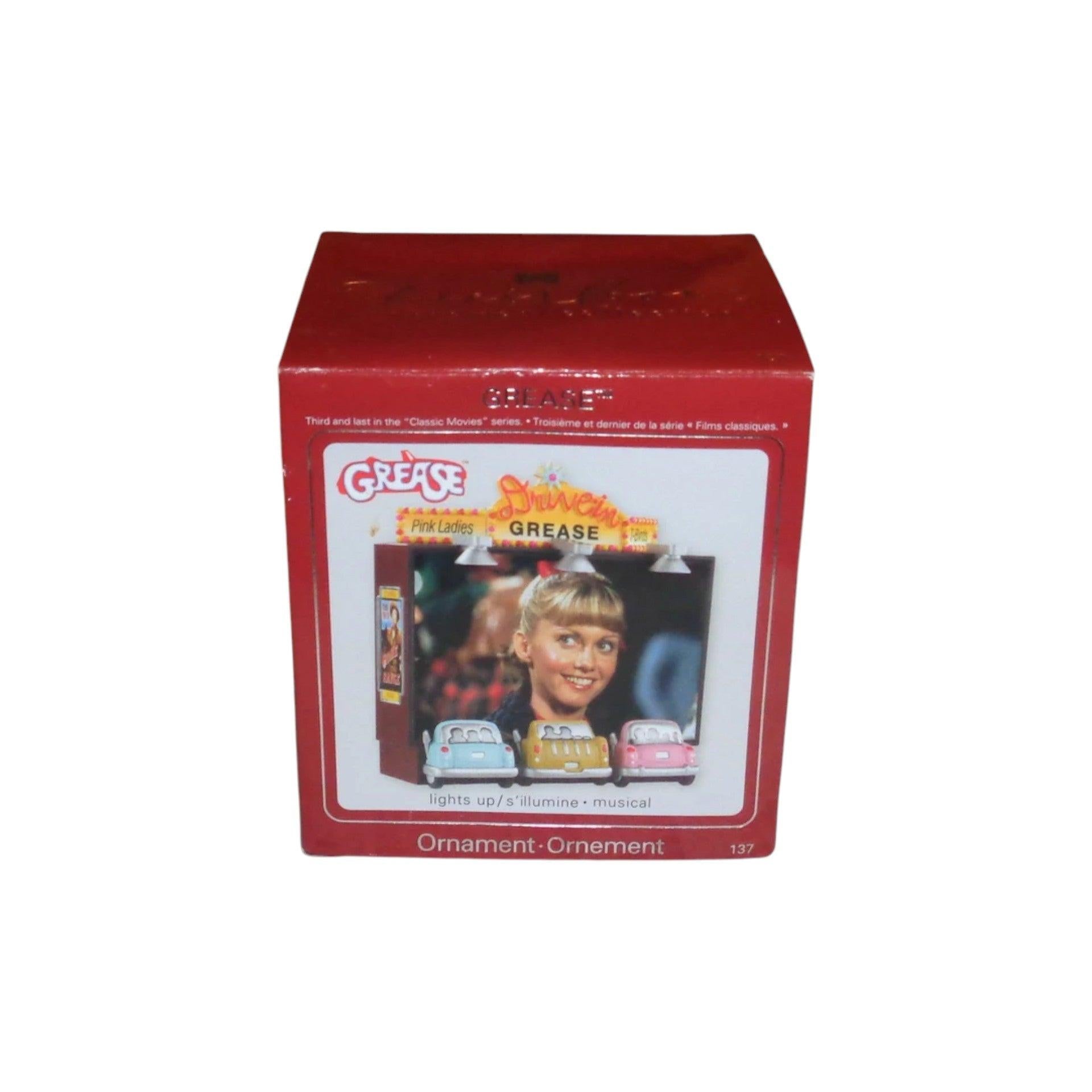 This American Greetings / Carlton Cards Heirloom Collection Grease Drive-In Ornament celebrates one of the most iconic musical films of all time — Grease — with a holiday twist. Featuring Sandra Dee (the character from the movie) and design elements from the famous Drive-In scene, this ornament blends classic pop-culture nostalgia with festive Christmas décor.