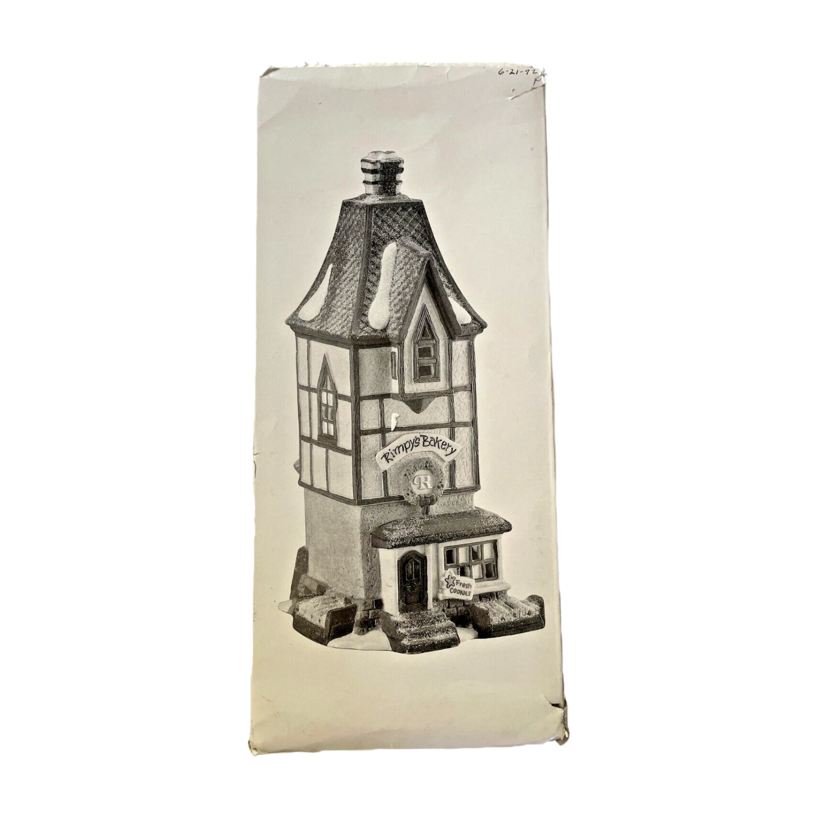 ring sweet holiday magic to your Christmas village with Rimpy’s Bakery, one of the most beloved buildings from the North Pole Series by Department 56. Introduced in 1999, this whimsical hand-painted porcelain building features candy-striped pillars, peppermint accents, frosted rooftop details, and playful elf-themed décor. Its warm interior glow makes it a standout piece in any North Pole display—perfect next to Santa’s workshops, sweet shops, or elf cottages. Retired in 2002, this collectible remains highly desirable for its charming design, bright colors, and signature bakery theme. Ideal for Christmas villages, North Pole Series collectors, holiday décor, and vintage Department 56 displays.