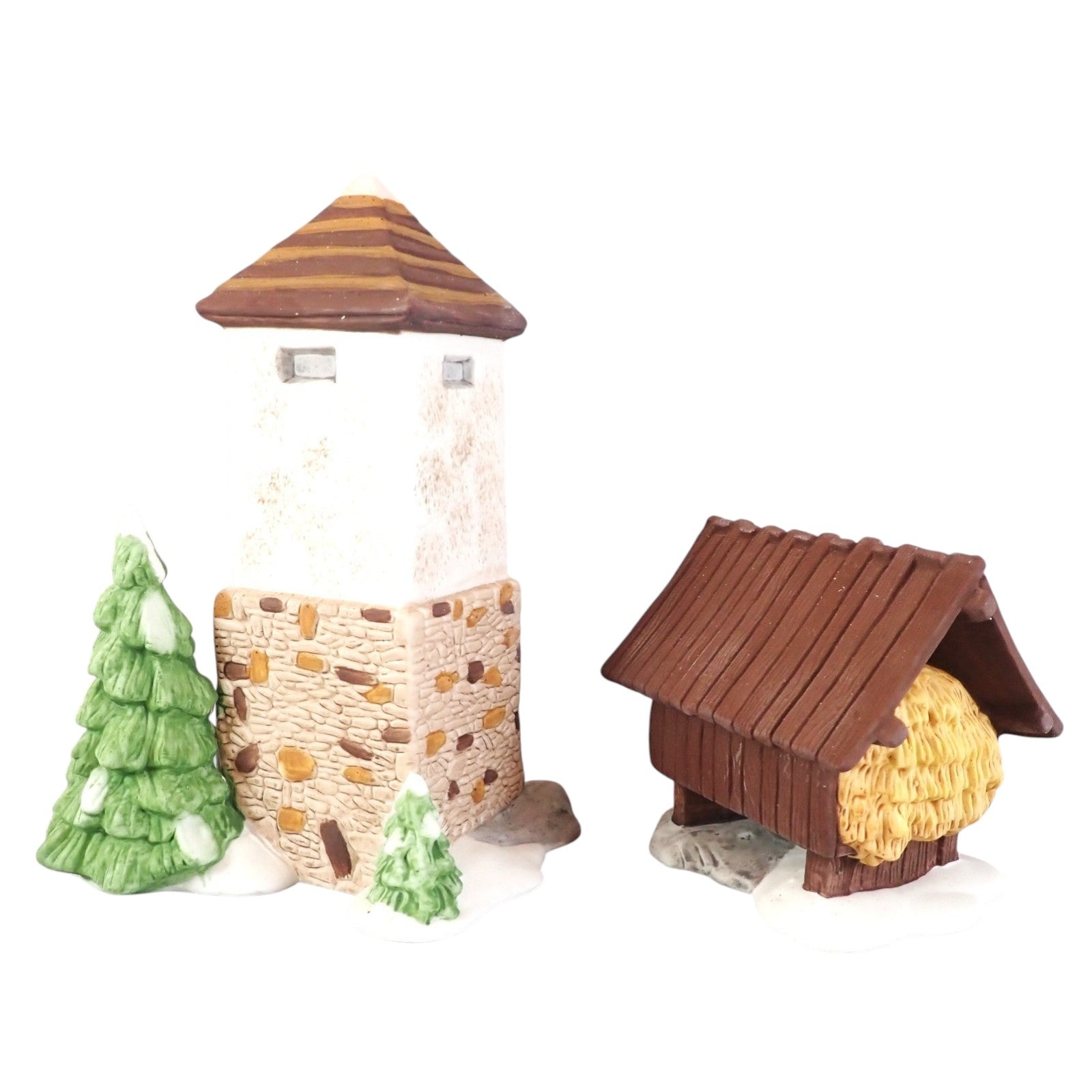 Add rustic farm charm and textural detail to your Christmas village layout with the Silo and Hay Shed (Set of 2) from the Department 56 Village Accessories series. This retired hand-painted resin duo includes a tall cylindrical silo with snowy accents and a wooden-style hay shed filled with stacked hay bales—perfect for creating a rural village setting or complementing farmhouses, barns and pastoral displays. These pieces add depth, authenticity and story to Christmas villages, country farm scenes, and vintage holiday décor, making them excellent additions for collectors who appreciate natural scenery and realistic accessory elements.