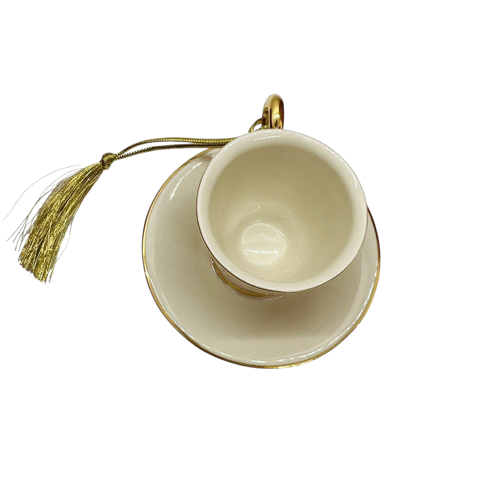 This charming vintage miniature features a whimsical design that blends a classic teacup and teapot into one sculpted piece. Styled with delicate floral artwork and a glossy finish, the ornament resembles a tiny collectible teapot resting on its saucer. The piece is made of ceramic or fine porcelain (depending on production year) and generally comes packaged in its original vintage box with protective inserts. This is a non-electronic ornament—no lights, sound, or cords—intended solely for display or hanging.