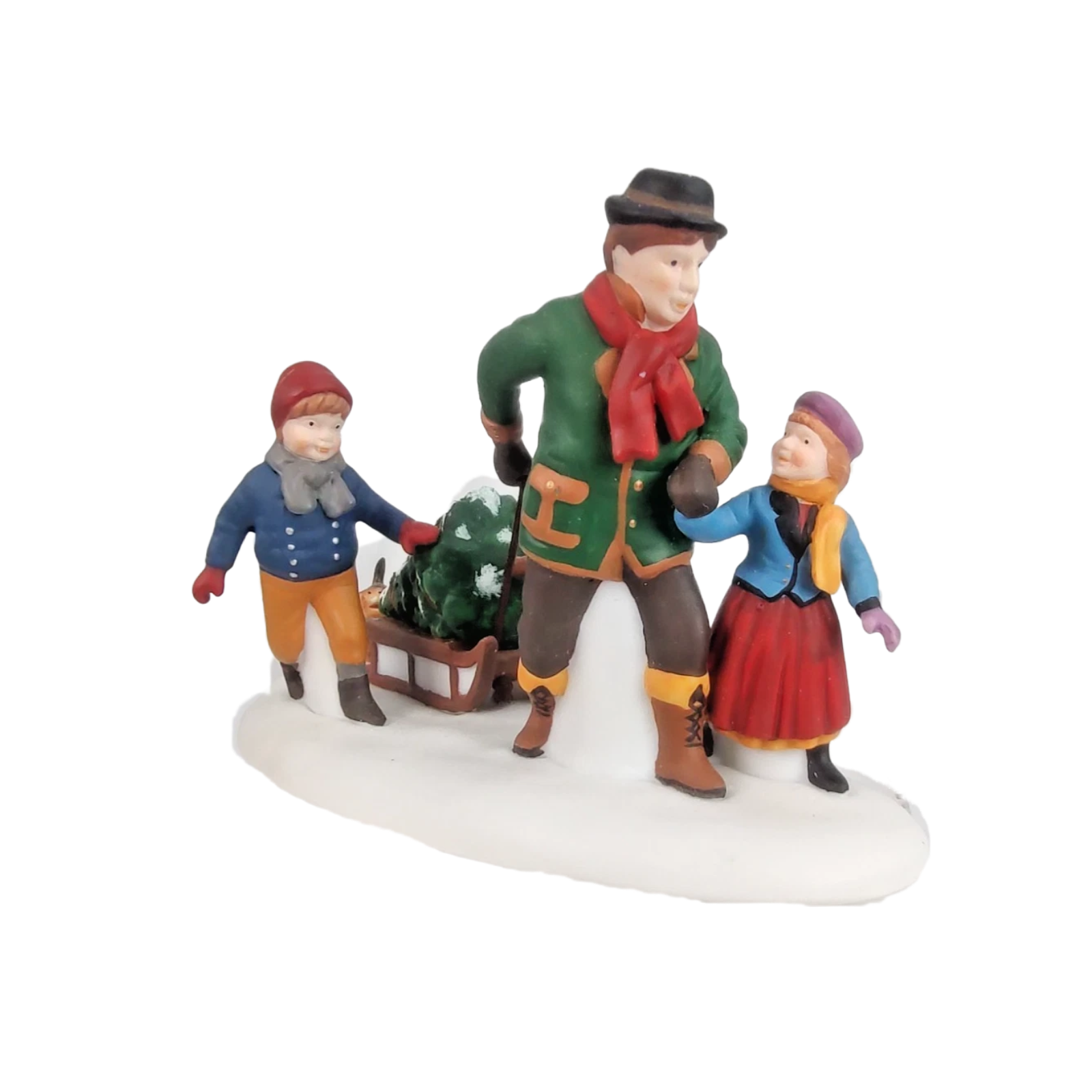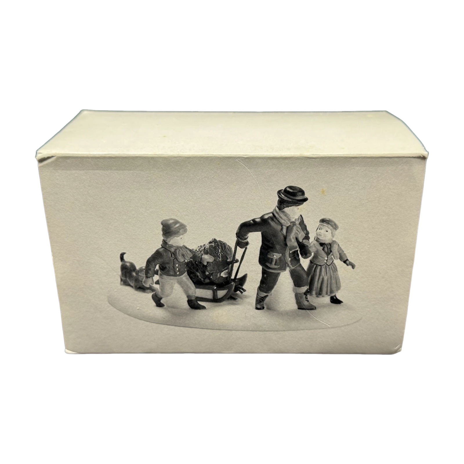 Celebrate holiday togetherness with the charming accessory “The Family Tree” from Department 56’s Heritage Village series. Introduced in December 1996 and retired in December 2003, this hand-painted porcelain figurine captures a father pulling a sled bearing a freshly cut Christmas tree, while his two children walk alongside and a playful puppy trails behind—evoking nostalgic winter scenes and festive family outings. Made in the era of finely detailed village accessories, this piece brings warmth, narrative and collectible appeal to any Christmas village display, seasonal décor scene or vintage collectible collection. Ideal for searches using keywords such as “Department 56”, “Heritage Village”, “The Family Tree”, “Christmas village”, “holiday décor”, and “vintage collectible”.